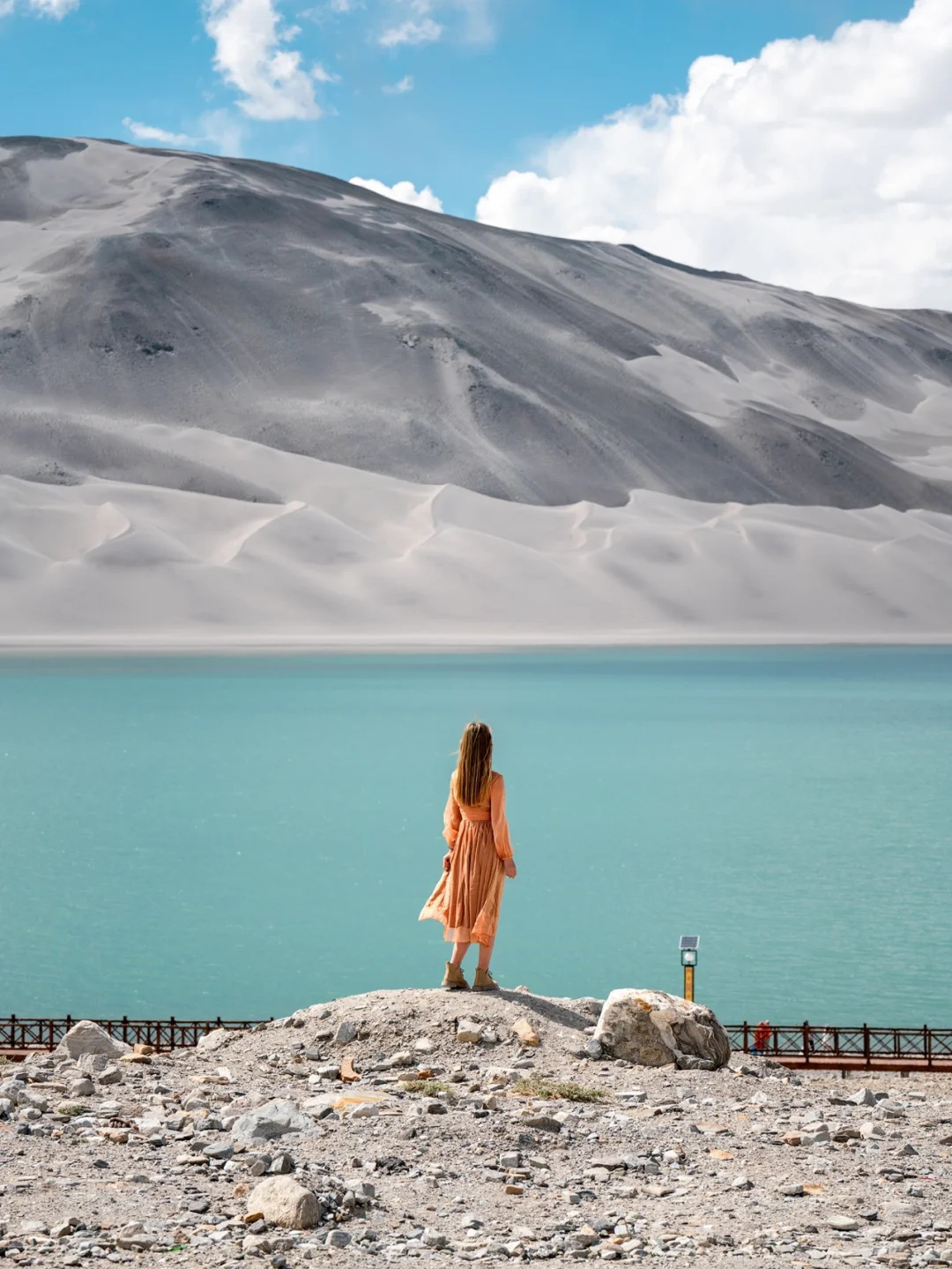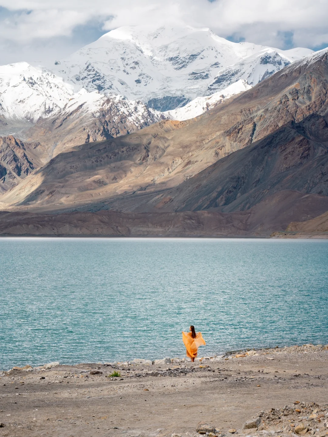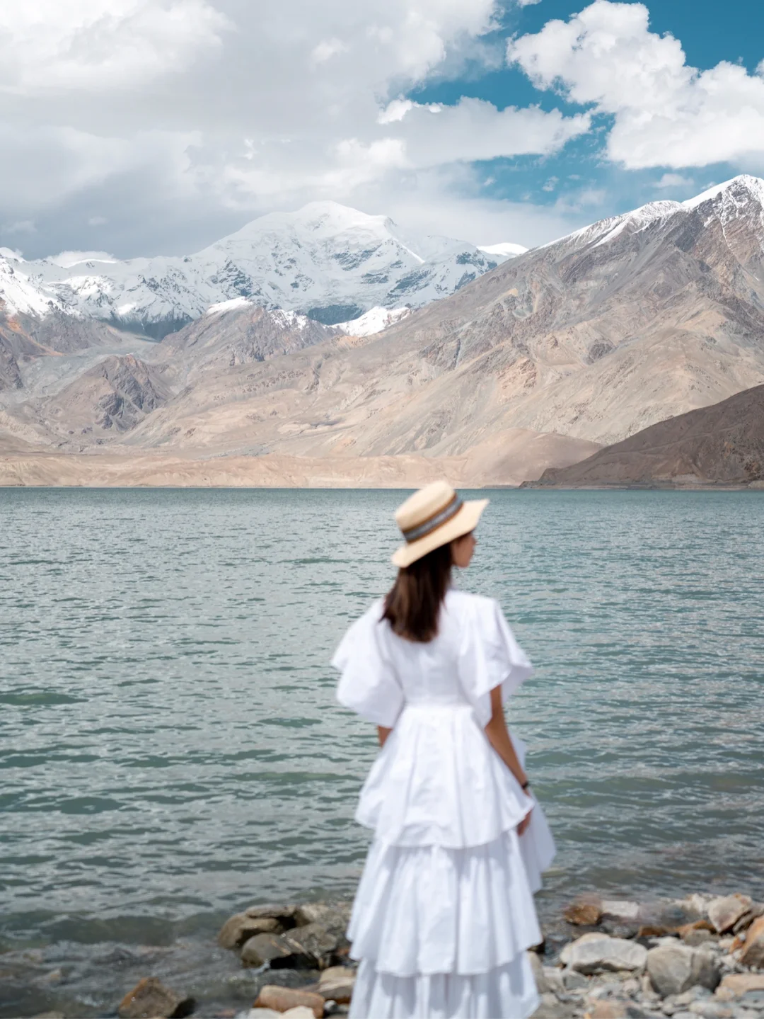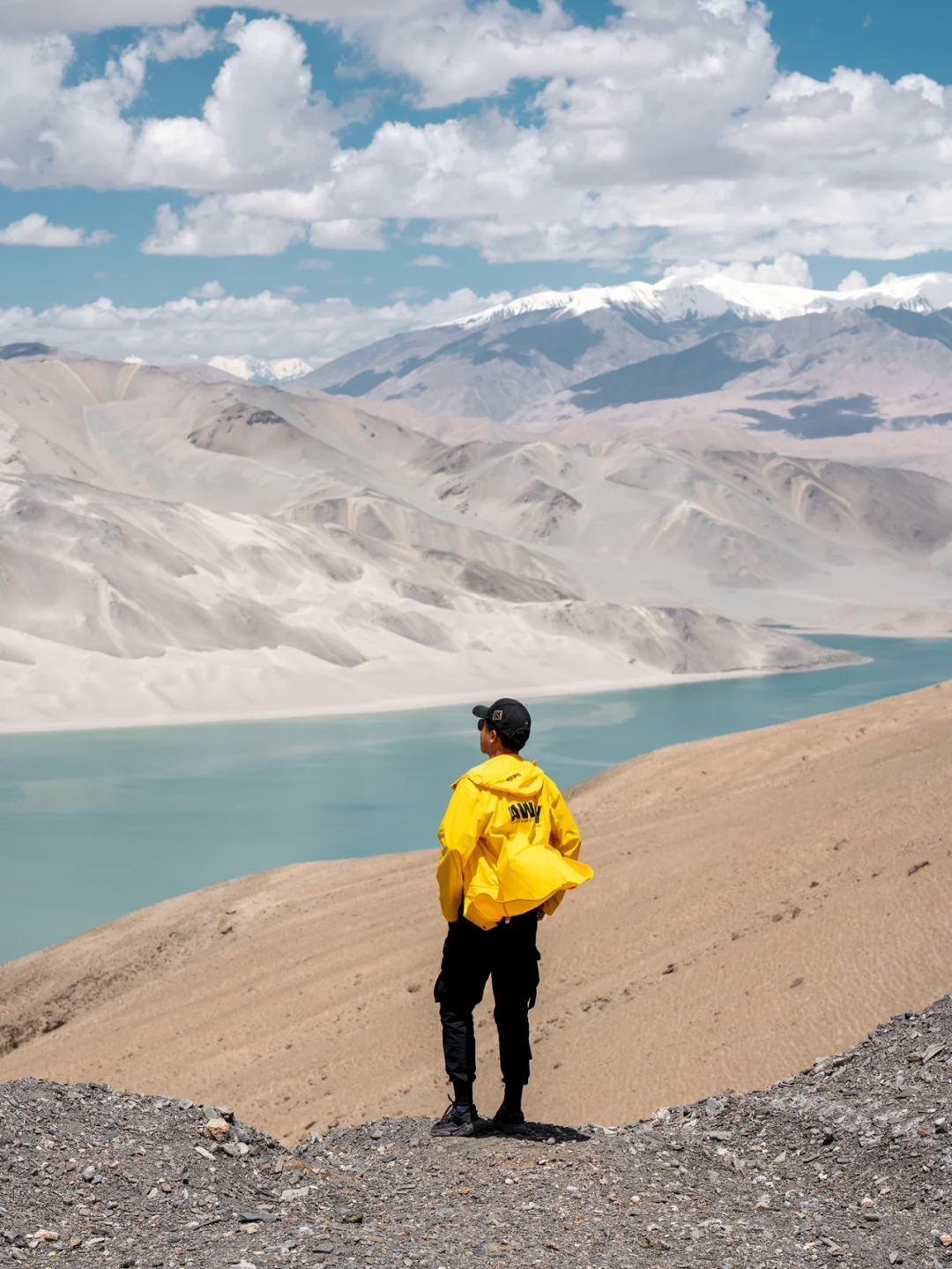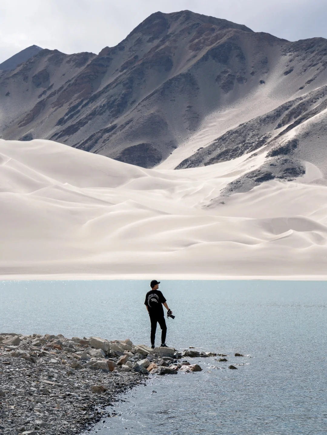 ~~~~~~~~~~~~~~~~~~~~ 自驾从喀什到塔县的路上远远就看到白沙山下的这一抹湛蓝,走到湖边看着远处的白沙山和雪山不禁觉得时间都静止了,这一刻应该是用来发呆的吧。 ~ 🚗如何达到 白沙湖在314国道上,距离喀什3个小时车程,离塔县2个半小时车程;从喀什出发的第二个观景台更好出片,停车位都很多,可以停好车放心下去拍照。 ~ 📷怎么拍 1⃣️白沙湖在不同的天气、光线和角度下颜色会有浅绿、浅蓝、蓝绿色以及蓝色等不同状态 2⃣️白色衣服或者暖色系衣服都不错 3⃣️推荐使用中长焦有压缩感,拉近人物和白沙山的距离 4⃣️海拔较高,拍摄需要走台阶,注意不要剧烈运动 5⃣️如果拍摄时间较长,记得带一瓶水去湖边并且做好防晒 6⃣️白沙湖有一些公路上的角度,但是千万不要在马路中间拍摄,大车比较多 ~~~~~~~~~~~~~~~~~~~~ 关于南疆帕米尔高原详细的行程和景点规划可以看我之前的帖子,在“收藏”-“专辑”-“TO看新疆”中 一枚爱摄影爱旅行的码农小哥 常驻杭州,活动于江浙沪,偶尔逃离包邮区
