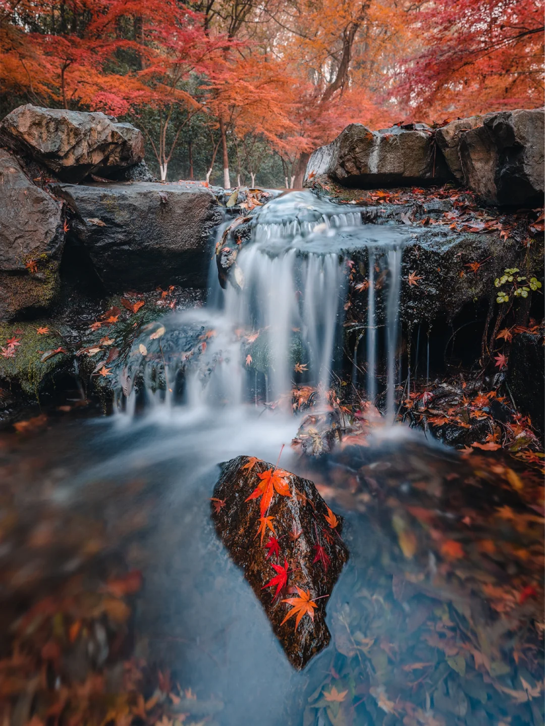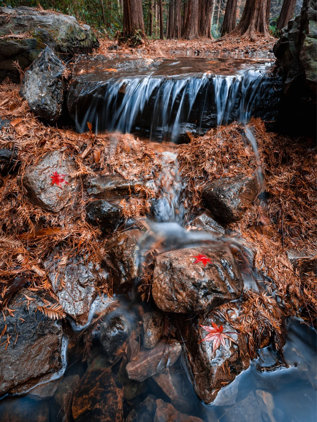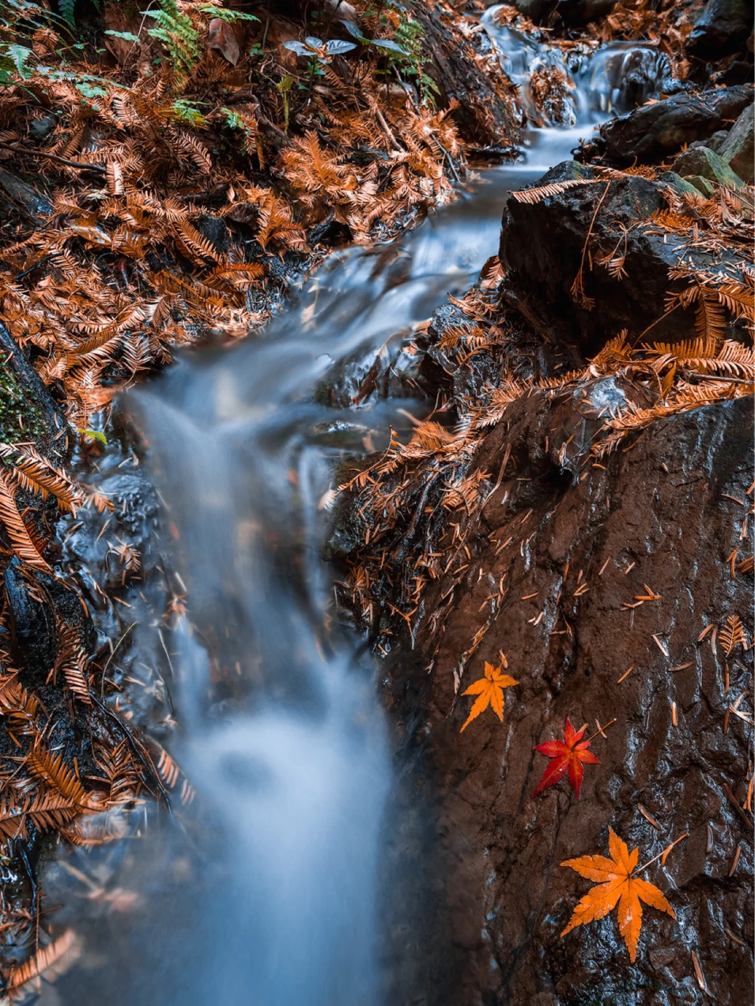 1号桥沿着溪流到九溪烟树之前其实还有些小瀑布和红枫,由于时间关系没拍