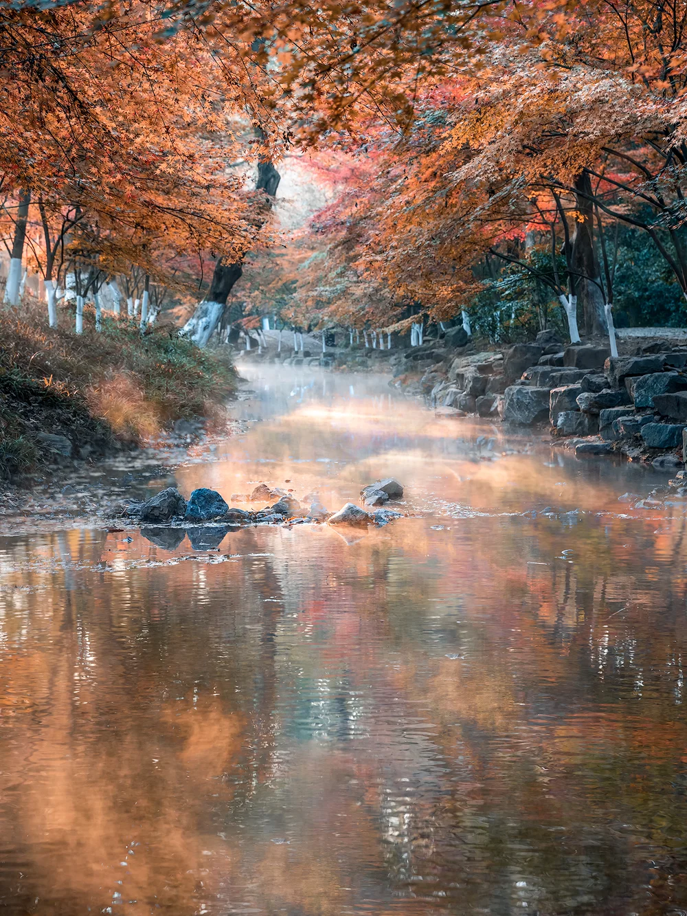 如果定位“九溪烟树”那么只会到景区门口,走到1号桥还需要15分钟,特别是如果早起去拍最好直接打车到1号桥,图片为去年12月拍摄,今年的枫叶没有去年好看,但是也很值得去观赏一下,毕竟错过就得明年了。