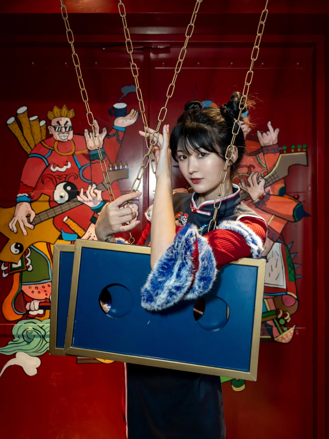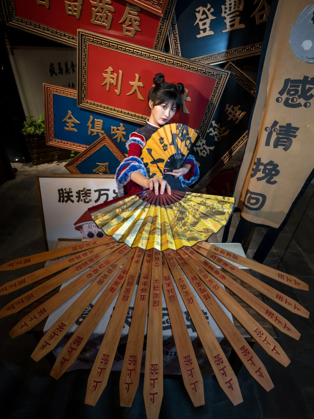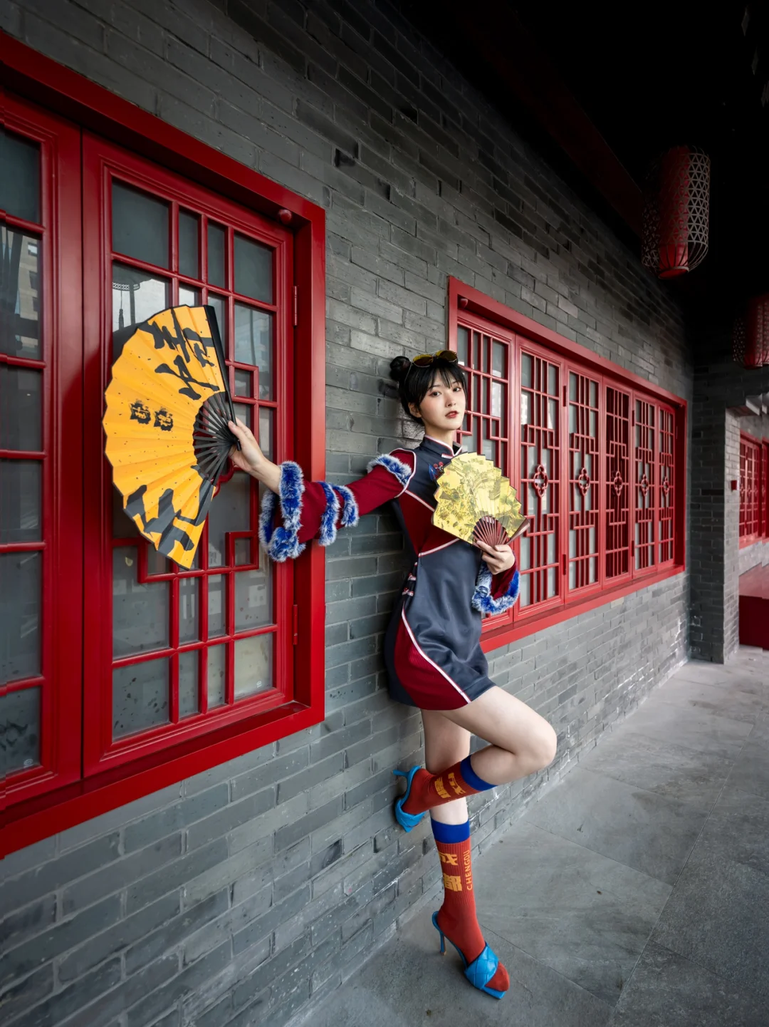 拍摄道具🔧:提前看好了场景图,模特搭配了专门的国潮改良旗袍,准备了烟斗、扇子等道具
