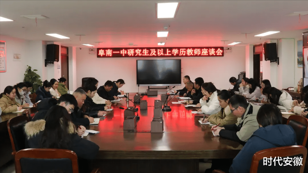 为赋能青年才俊,聚力教研提质,推动学校高质量发展,1月11日下午,阜南一中隆重召开研究生及以上学历教师座谈会。校级领导班子成员、各年级主任与全体研究生及以上学历教师共同参会,齐聚一堂,畅谈教育,共谋未来。