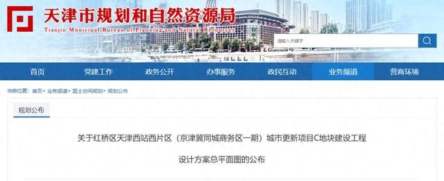 11月5日,天津市规划和自然资源局网站发布《关于红桥区天津西站西片区(京津冀同城商务区一期)城市更新项目C地块建设工程设计方案总平面图的公布》,公布内容显示,天津西站西片区C地块将建菜市场及商业建筑。