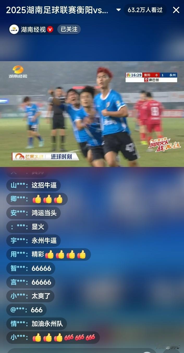 湘超第九轮衡阳和永州上半场比赛已经结束,永州暂时以1比0领先。看了比赛,衡阳和永州实力也是不相上下,只能看谁更拼了。 作为永州人,还是希望永州能拿下衡阳。 他们技术虽然不是很厉害,但是他们都很拼,这就是很多人喜欢永州队的原因。 不管谁赢,精彩就好!你们支持谁呢?