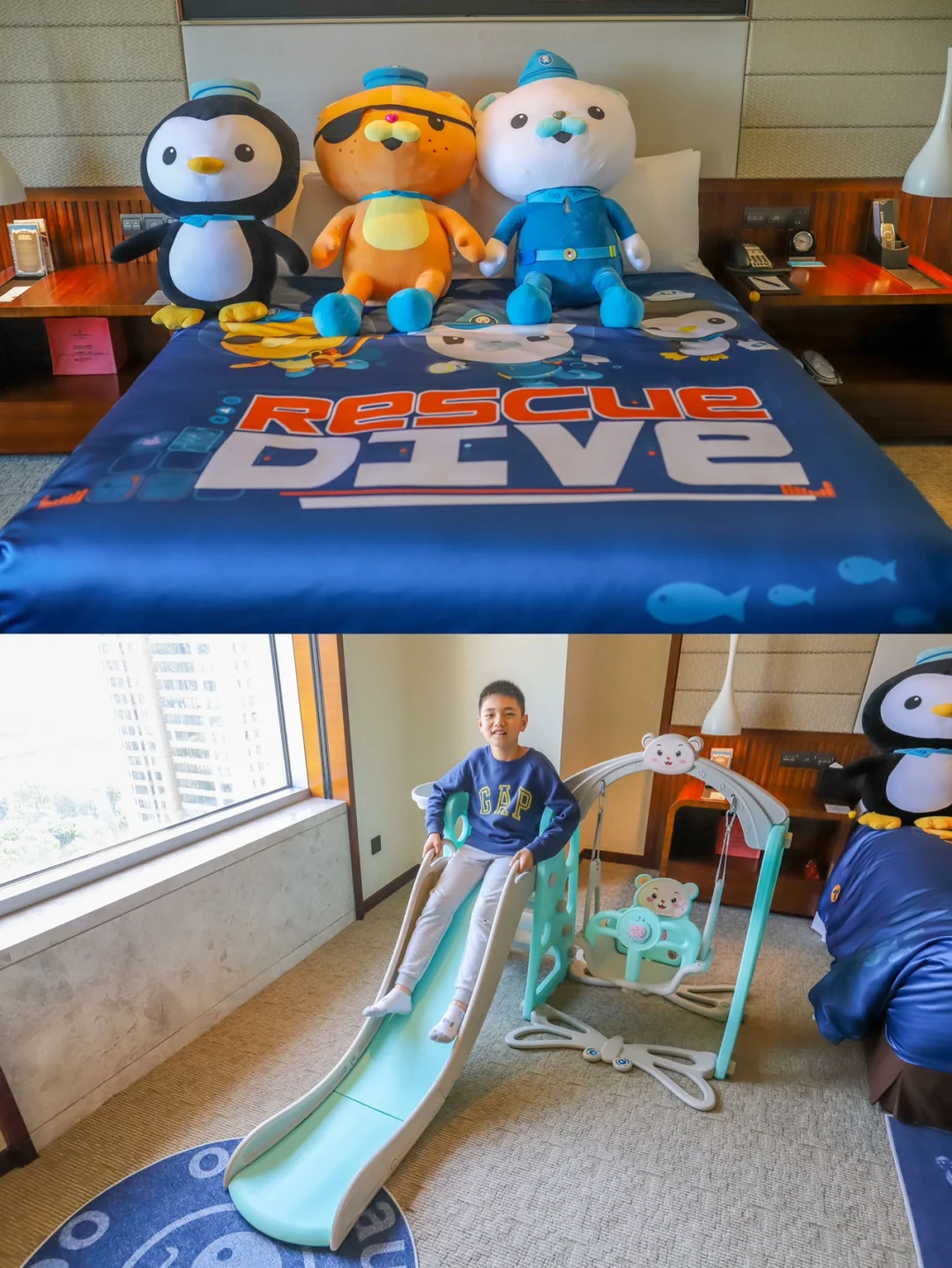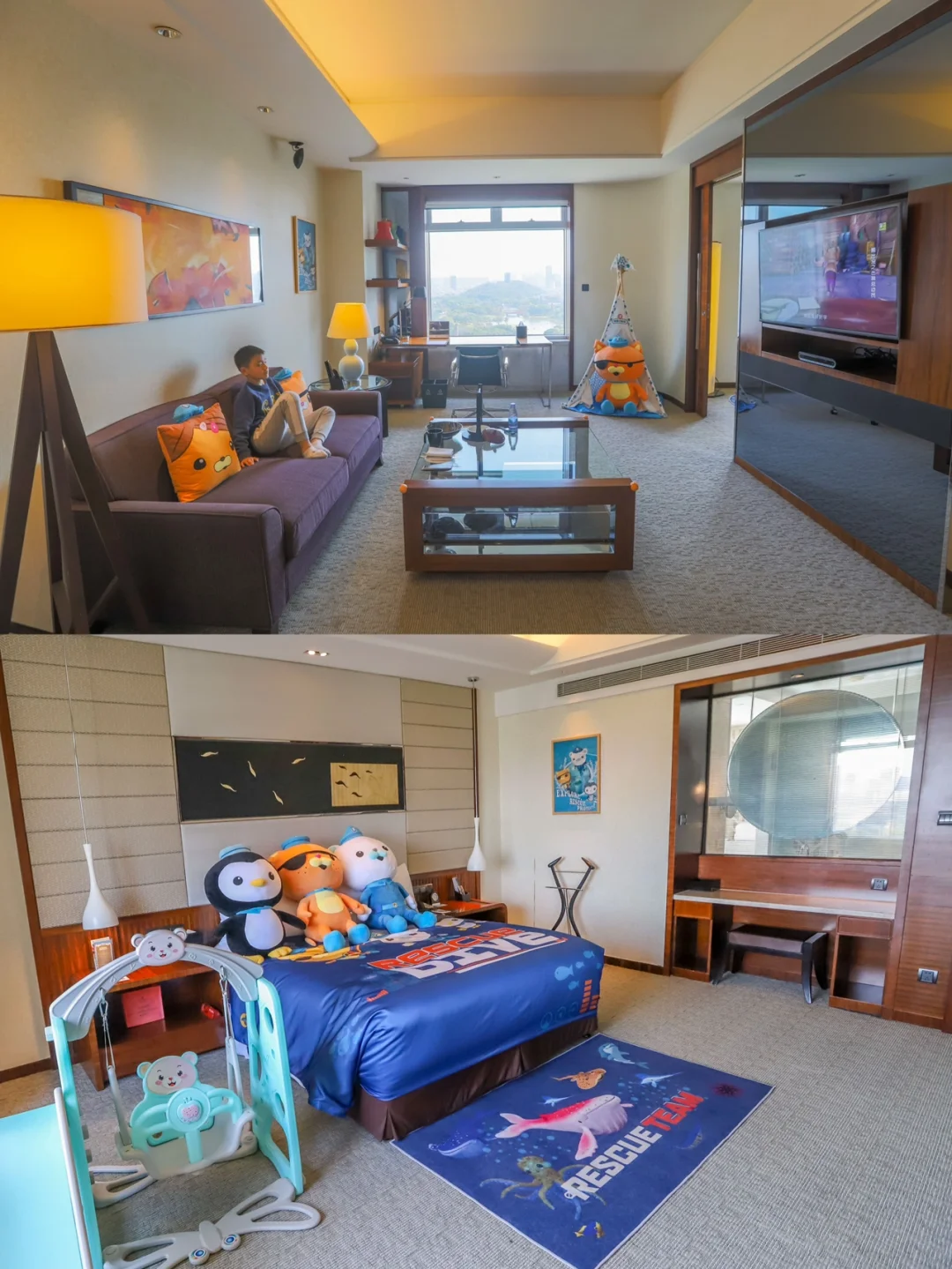 我们这次特意选择了位于千灯湖c位的佛山洲际酒店。因为带娃入住,所以我们这次选择了海底小纵队亲子套房,房间里面布置非常贴心,所有的桌角都是做了软胶防撞处理。