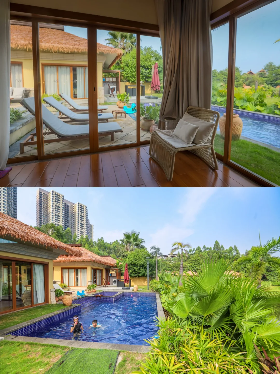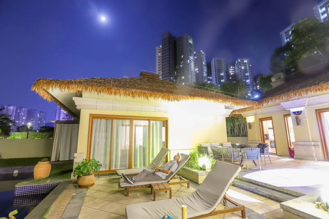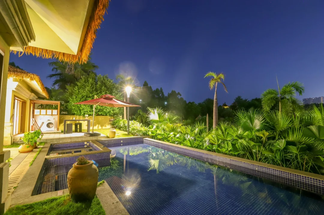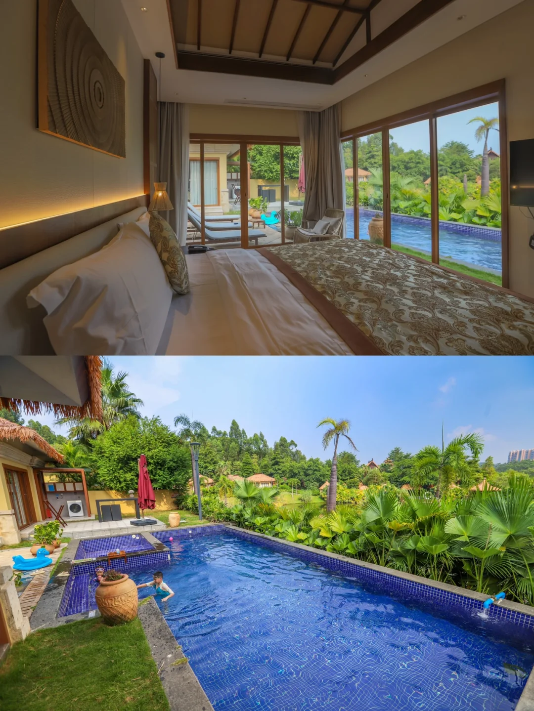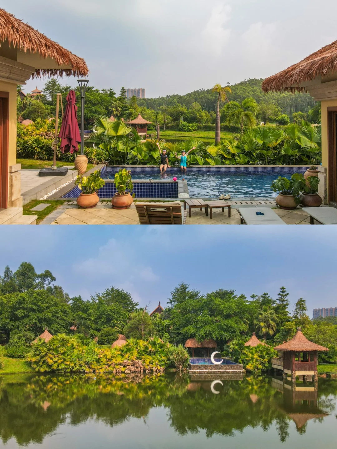 最大的特点是,不出国享受东南亚style度假,一边游泳一边观赏不远处的山湖之景,所以住临湖别墅,很适合周末二到三家人聚会,还是很值得推荐的。