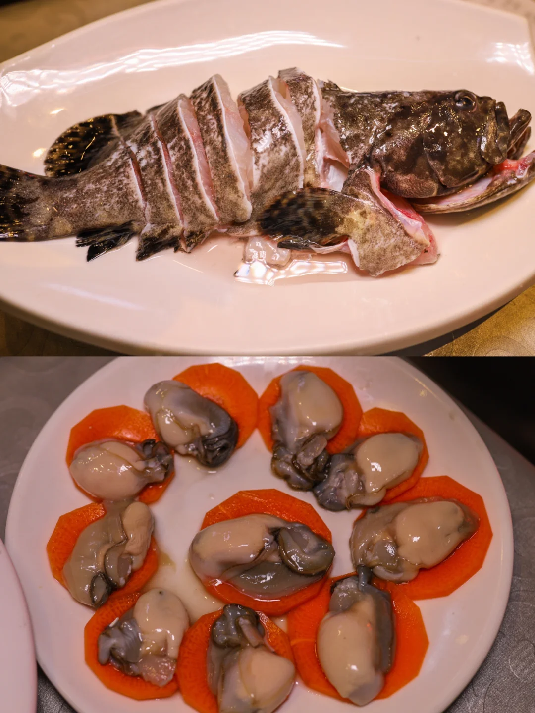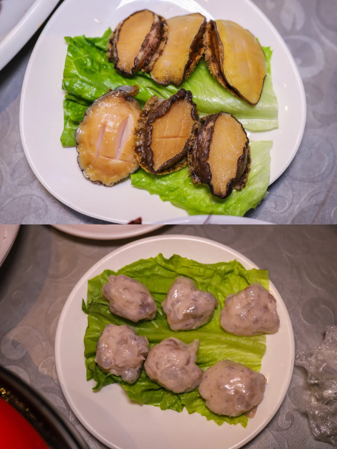 鲍鱼:鲍鱼开花切好,不带壳直接煮,肉质结实,沾了酱油后入味好吃。