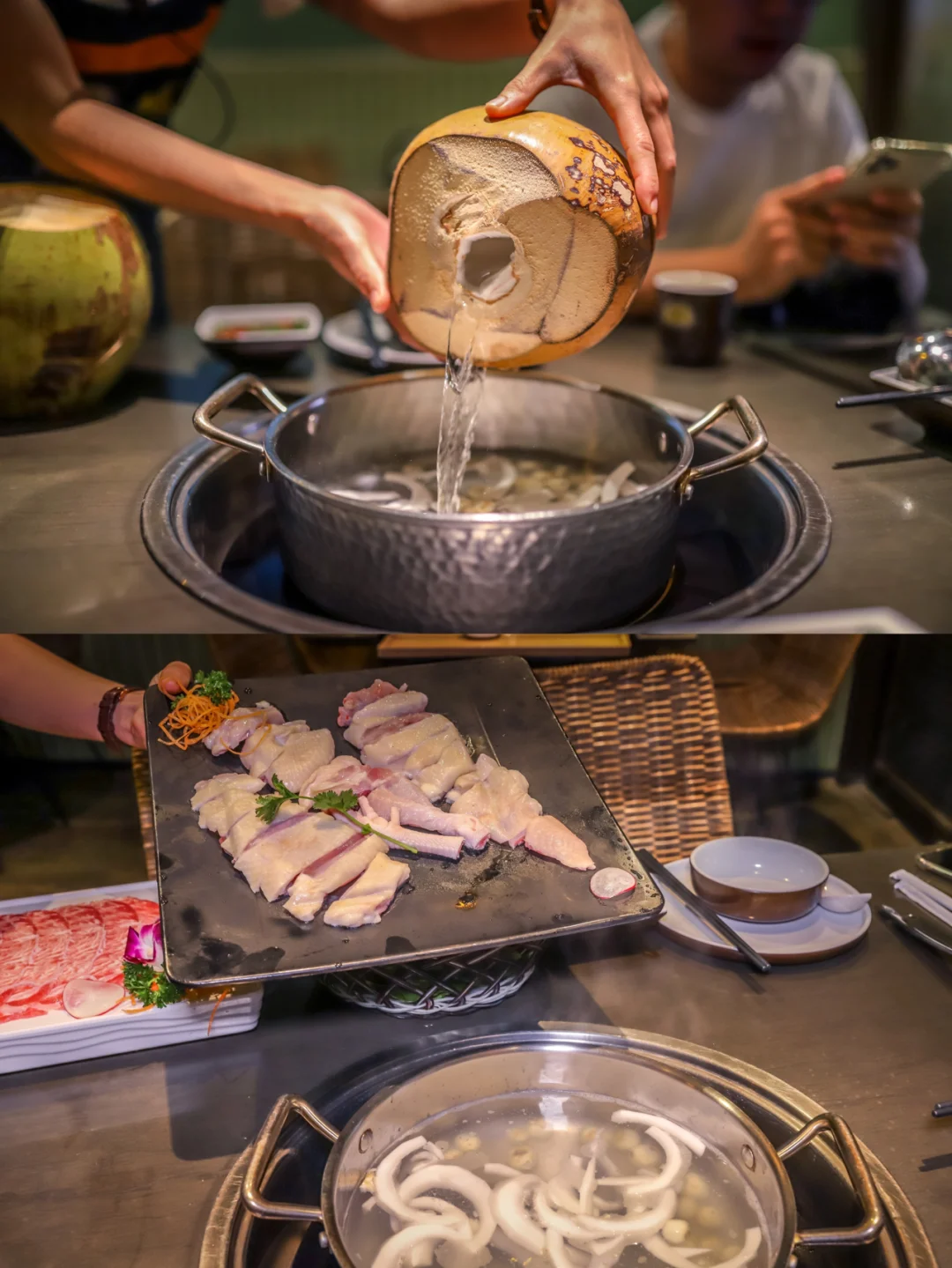 好的椰子鸡是很讲究食材的,这里都是用三只青椰产出的椰子水,搭配散养125天的文昌走地鸡。