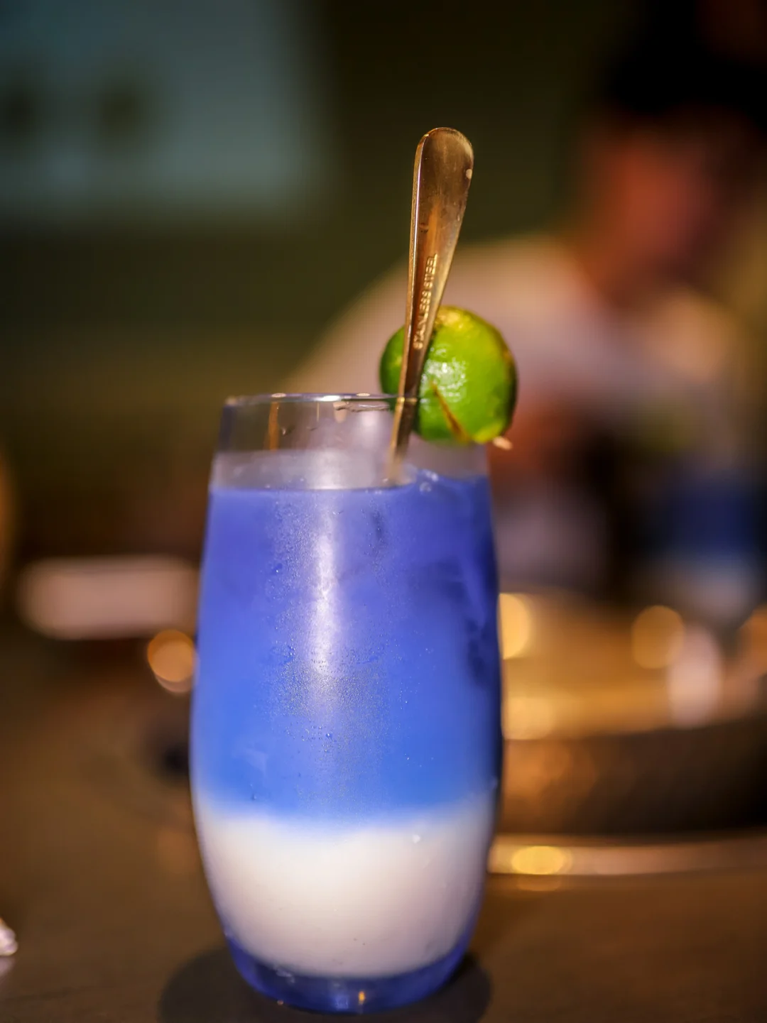 这是碟豆花做的一种饮料,在东南亚国家很流行。加入青柠后,会慢慢从紫色变成蓝色,很神奇的饮料。