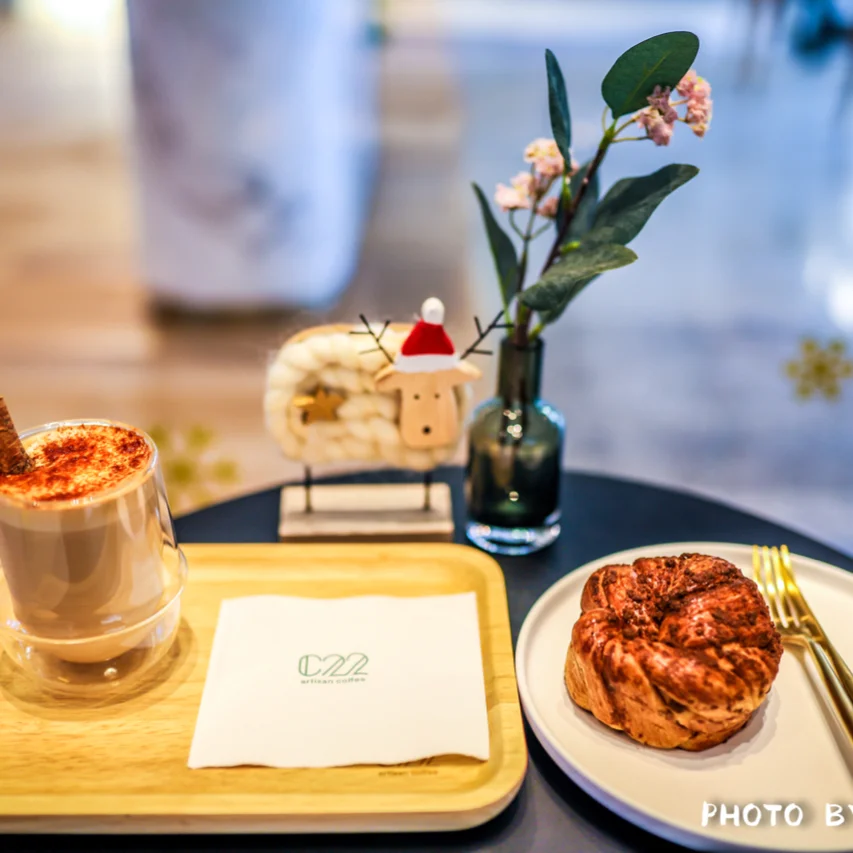 下午约了朋友到合景睿峰谈事情,楼下经过一间店铺,马上被店内的圣诞装饰所吸引,小羊戴圣诞帽太可爱了。令人感到十分愉悦与惬意。 见墙上介绍该店主营有22款不同风味的咖啡饮品组合,我选了这家最有特色的肉桂辣椒拿铁,咖啡卖相精致,甜度适中,呷一淡浓浓的肉桂香味满溢整个口腔,尤其是搭配的肉桂包,酥软可口,吃后感觉超棒! 店内比较安静,座椅舒适,比较适合商务或闺蜜一起High Tea。每个座椅下都设计有USB插座,这对我们来说,非常方便。