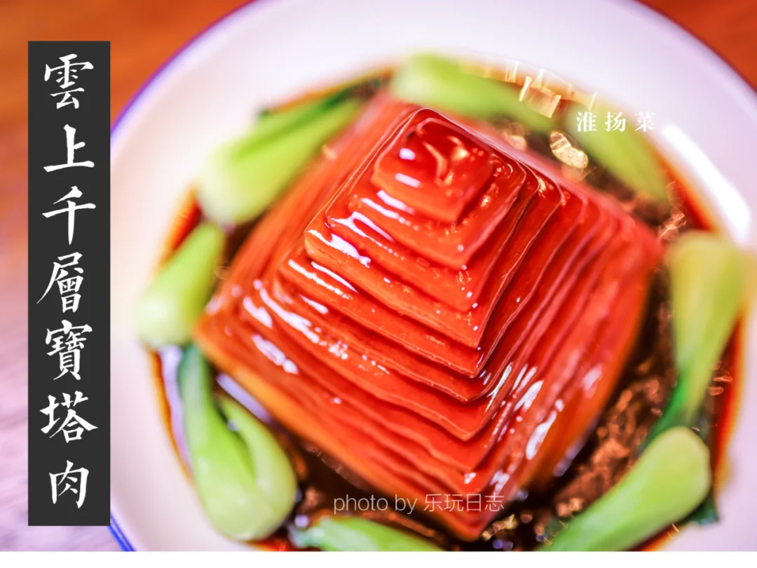 朋友上海上,所以晚饭我们在十里弄堂吃淮场菜,摆盘非常精致,作为国宴菜的重要组成部分,淮扬菜对刀工要求很高。招牌菜云上千层宝塔肉将猪肉切片超级薄的一层,外型跟菜名一样,像层层叠叠的宝塔。