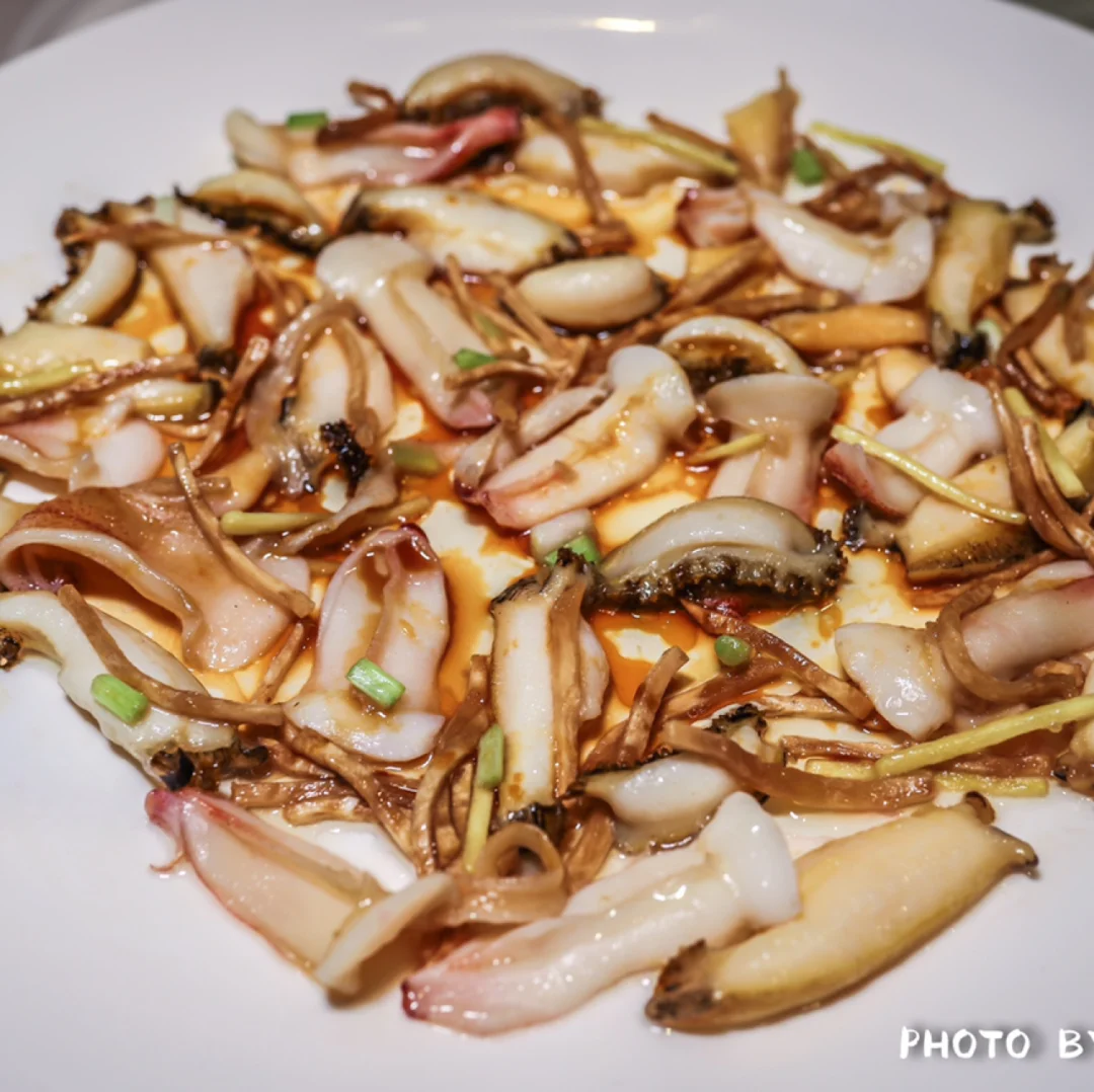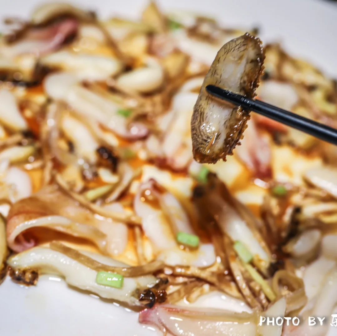 均安头菜鲍鱼蒸蚌,这个也很鲜美,之前舌尖上的中国介绍过均安蒸猪,现在吃的是用当地另一个特色食材,头菜做配料,鲍鱼渗入头菜汁,更入味,值得一试。