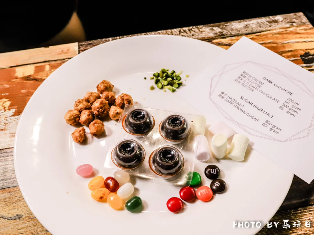 巧克力制作时,Rocky从煮糖,调制巧克力,给我们演示了一系列的制作技巧,非常专业,他曾多次前往日本,意大利等地区交流学习巧克力制作课程。