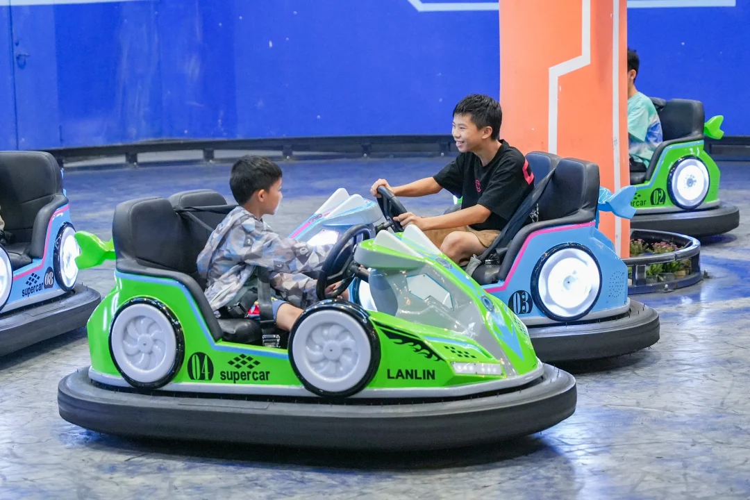 必体验项目,疯狂卡丁车排名第一,跑道弯弯曲曲,有几层楼高,在这里赛车超爽的。