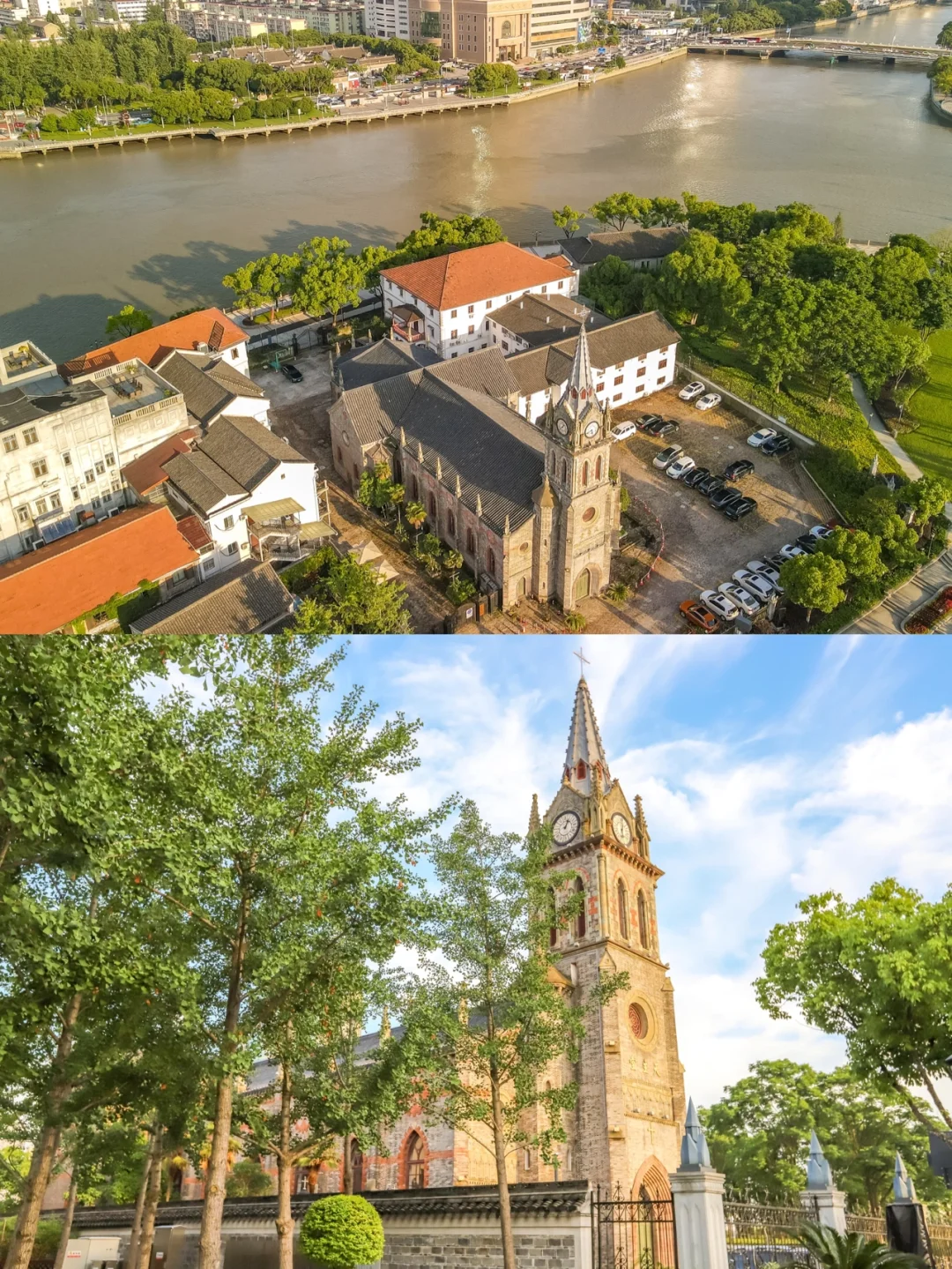 江北天主堂被网友说是宁波的“小巴黎圣母院”,是一栋哥特式建筑风格的教堂,塔楼非常高,顶部还建有钟楼。