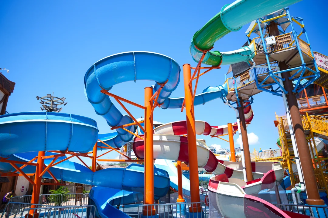 它拥有四个主要的水上游乐设施,其中包括中国首台进口的裂口式大喇叭和锯齿巨碗组合的挑战龙卷风、中国滑道体验最丰富的超大型海湾水寨。