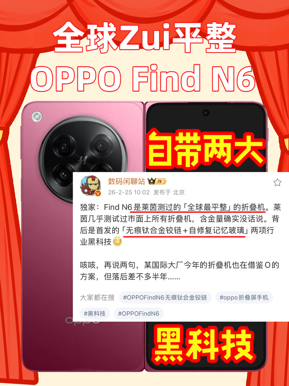 咋感觉属于折叠屏市场的春晚现在才开始呢?这回OPPO Find N6是直接锁定全球ZUI平整折叠屏了?