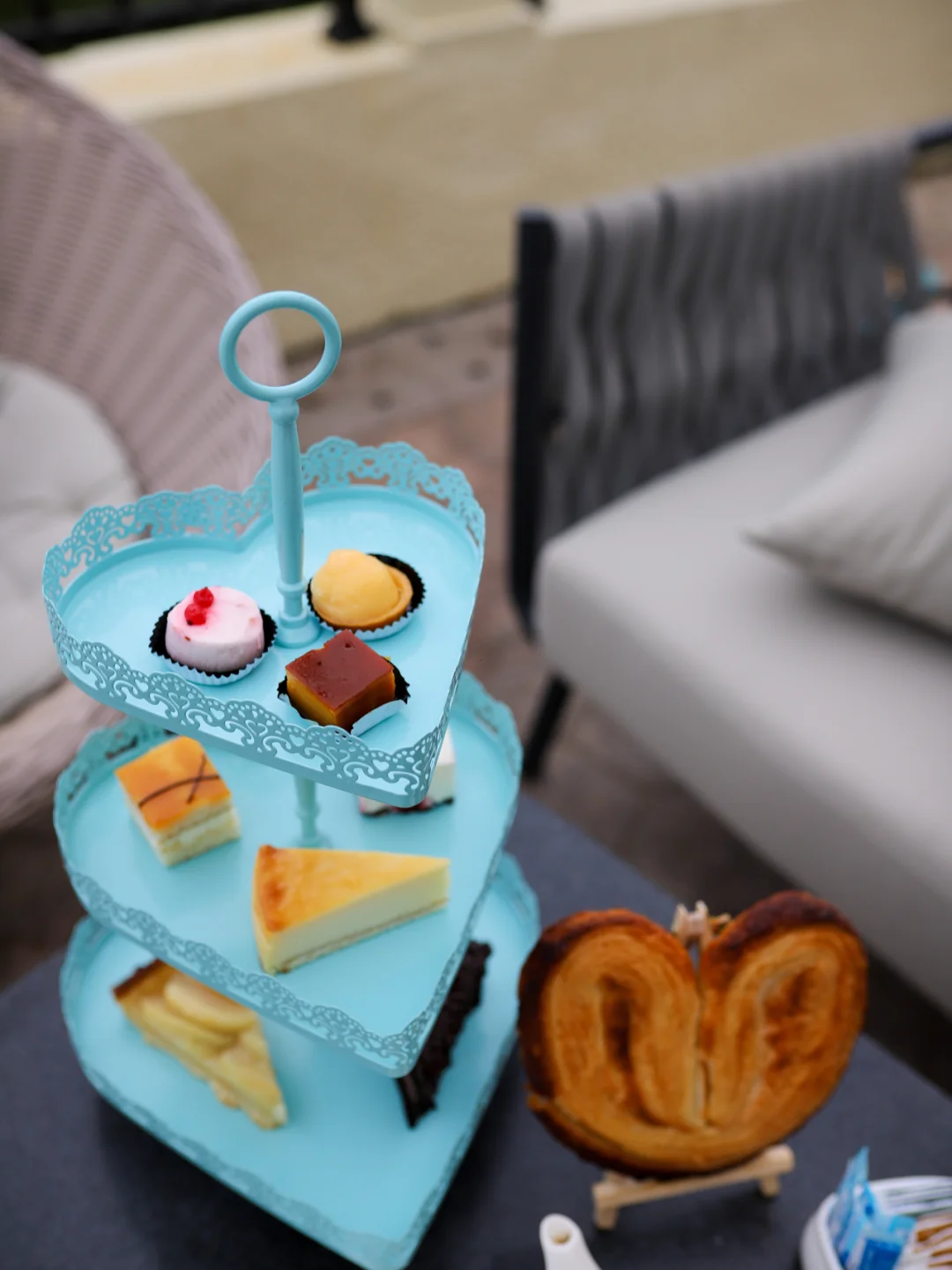 下午茶有室内和户外两个区域,我们选择了面朝大海的露天阳台,今天阴天,海风柔和,在此喝下午茶,非常惬意。