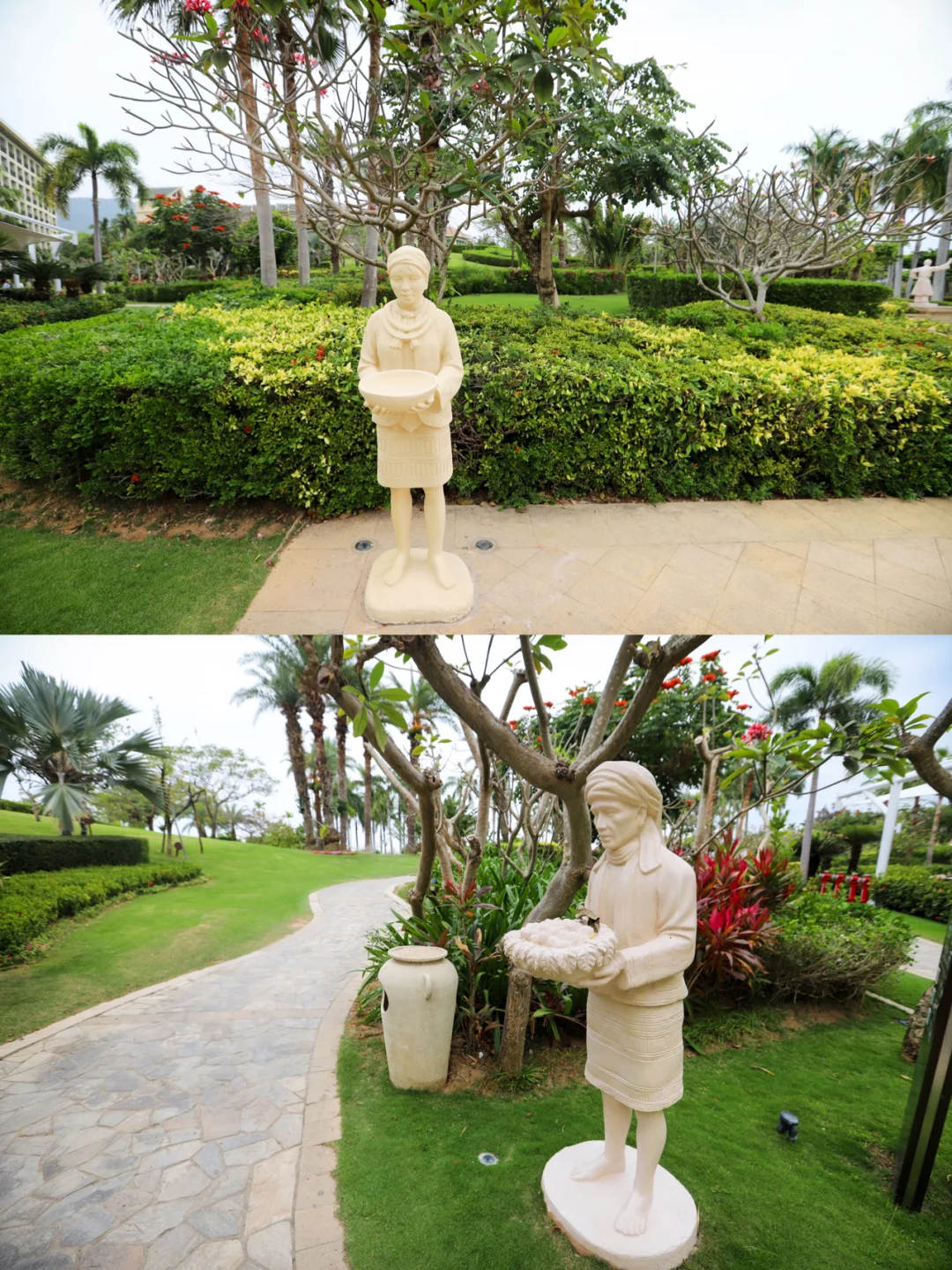 √酒店的草坪有很多的椰子树和石雕像,还可以拍一些异域风情的照片