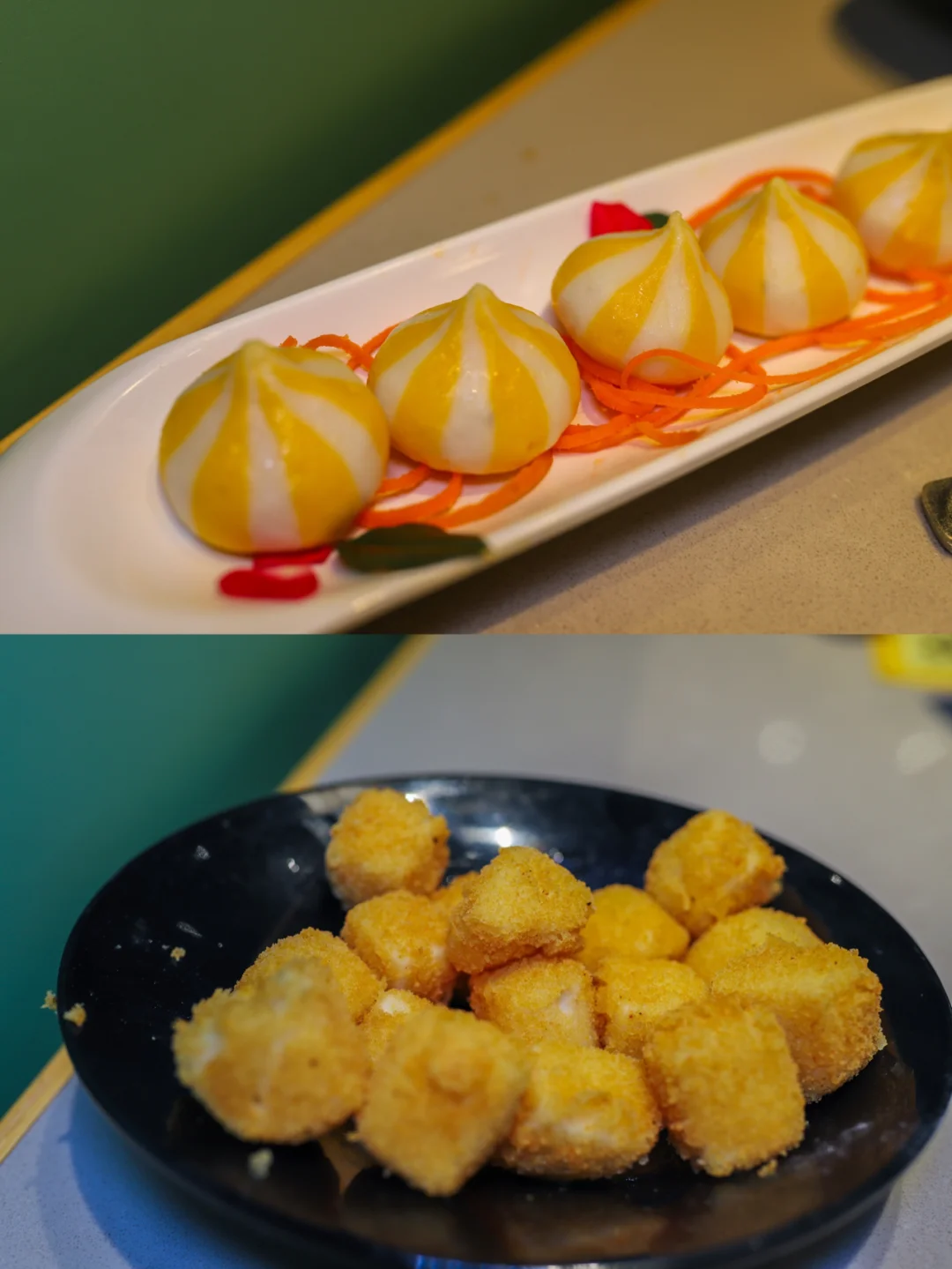 选了王思聪家的网红店,环境非常小清新,店内整体是绿色加圆拱门洞的造型,灯光用了爱玛士黄,整体感觉很舒适,桌与桌之间也蛮宽敞的。