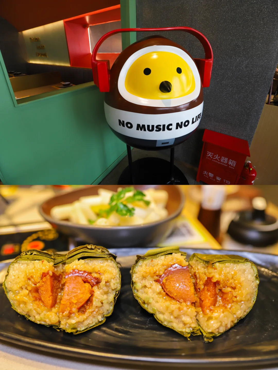 他们家的粽子,我最喜欢吃了,一只粽子切成四份,摆盘很精致,馅是咸蛋加猪肉的,完全不腻咸香好吃!