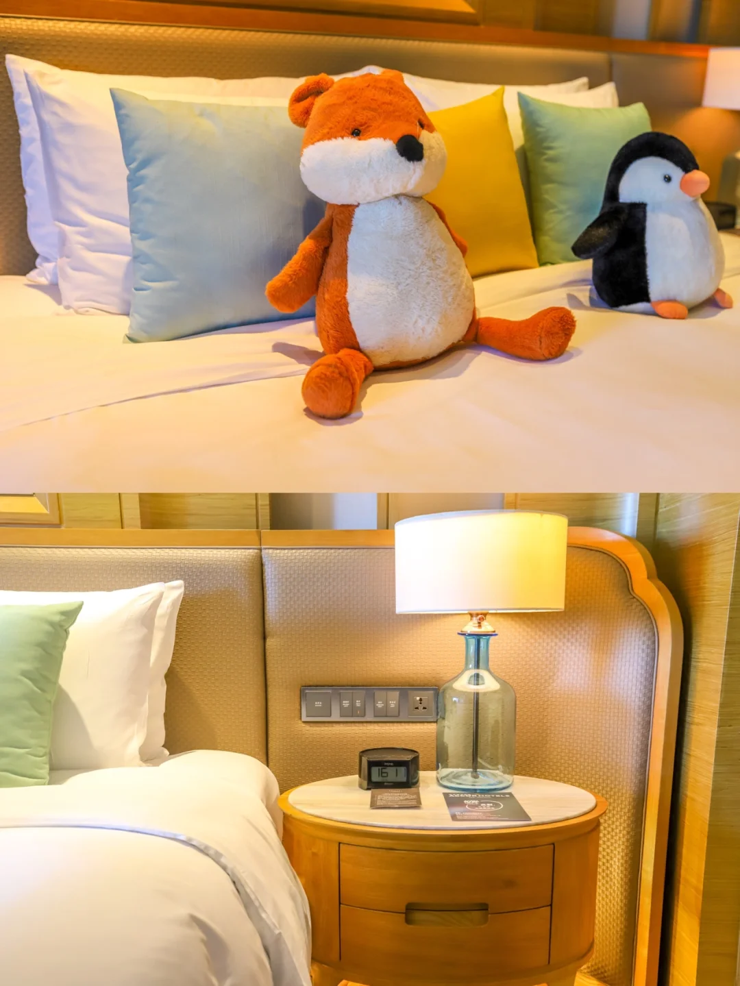 我们的海景家庭房在七楼,房间内的壁画、抱枕、主题沐浴组,还有绘本等,可以看到小王子的身影。