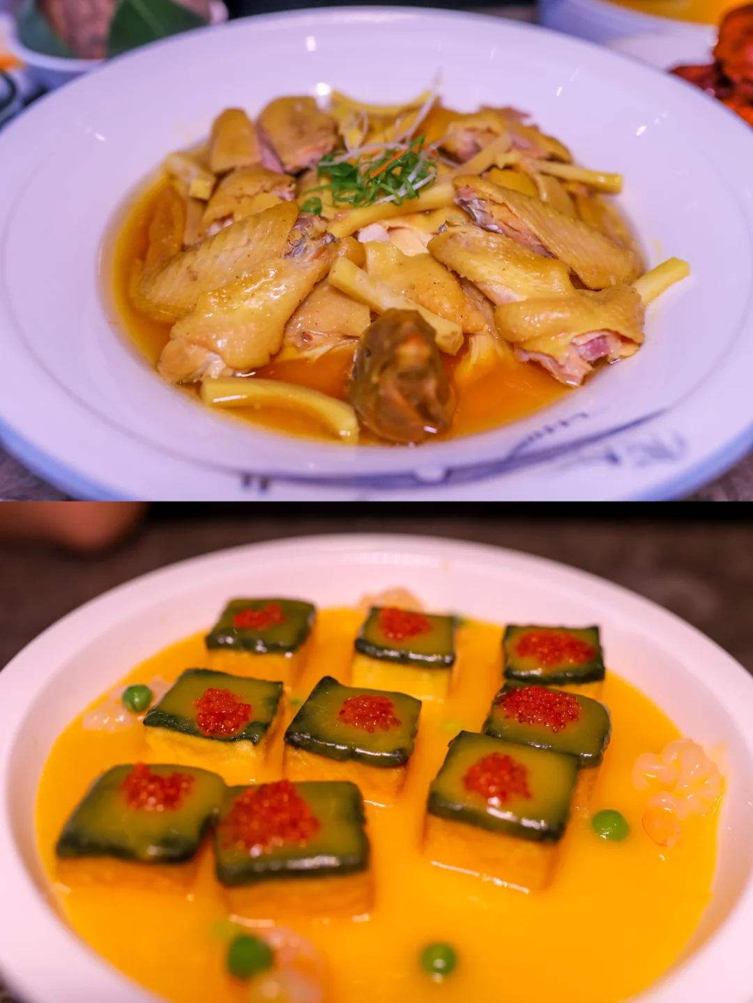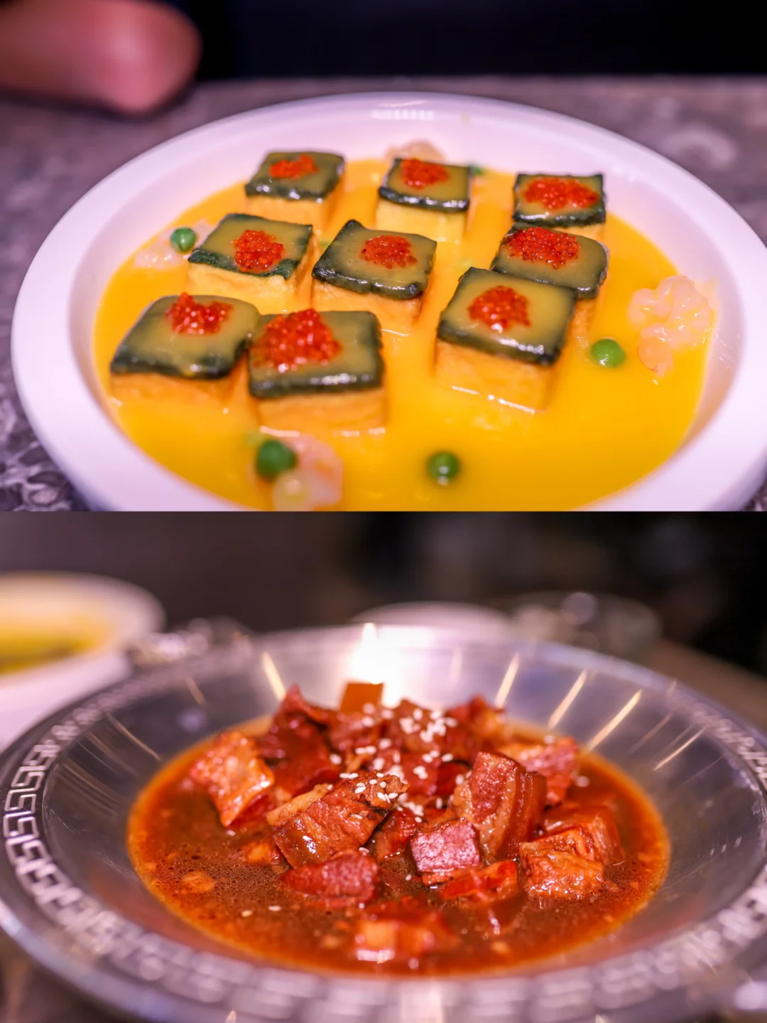 2【私房金汤豆腐】这道菜的颜值非常的高,绿色的豆腐上面有韧劲。然后豆腐里边是非常的滑嫩,总之就是挺好吃的。