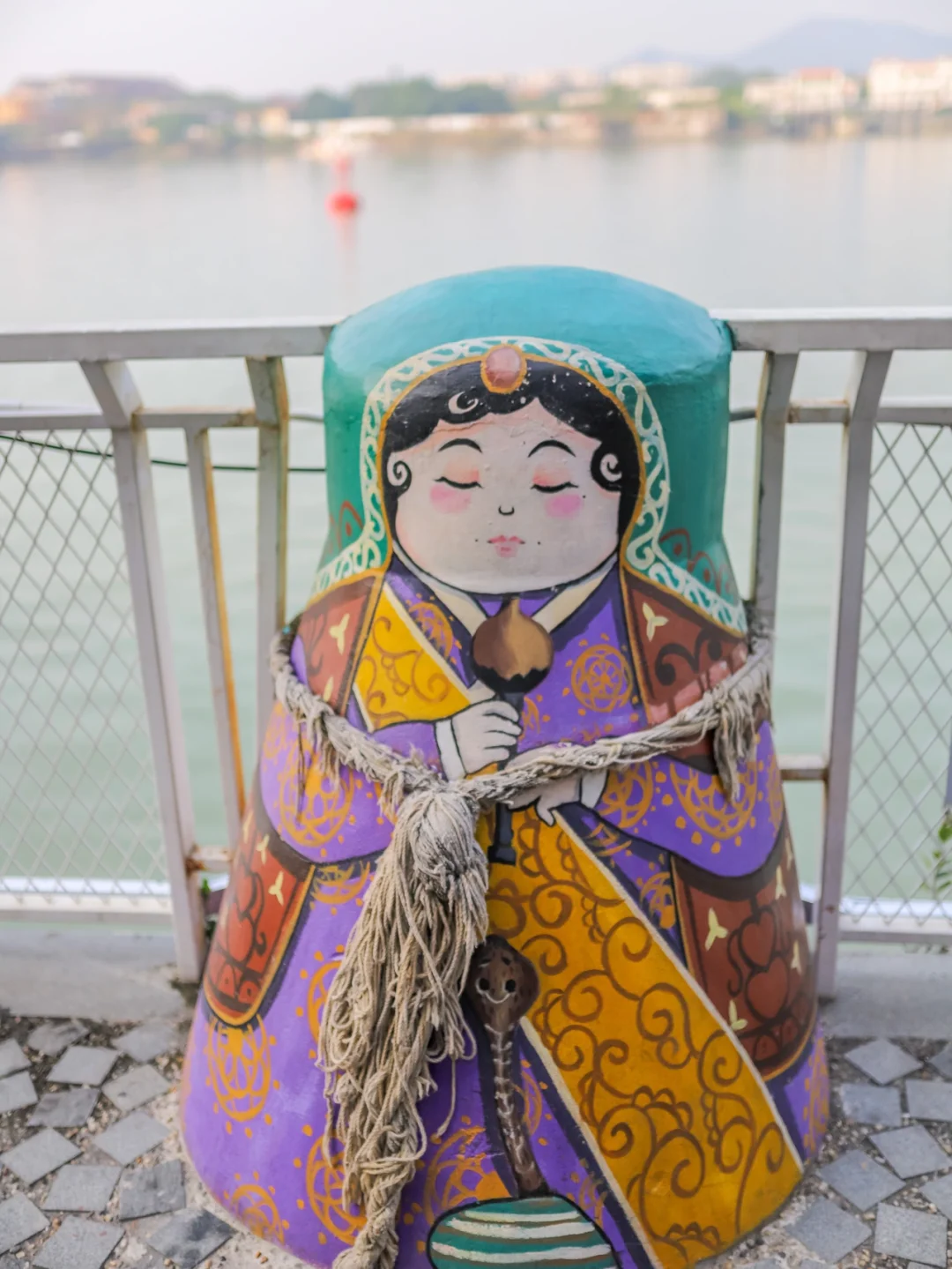7,沿着码头一路走,会看到很多不一样的俄罗斯套娃小雕塑,他们的表情都好可爱,有男孩也有女孩,和他们摆出同样的表情,会是一个不错的构图。