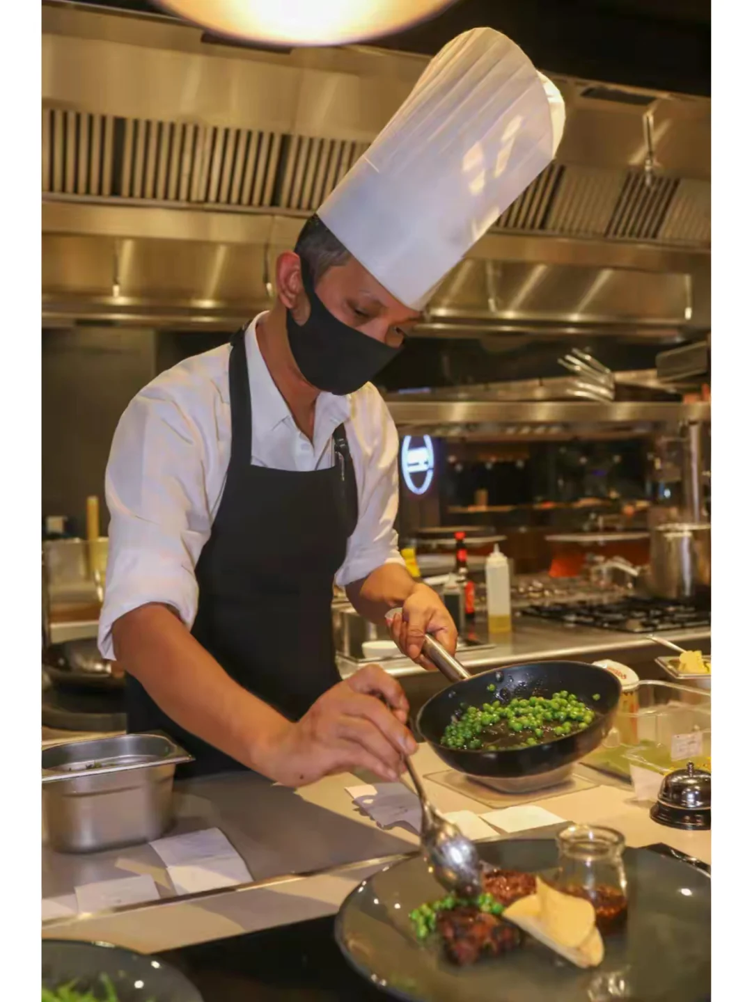 平日,餐厅主食是三选一的,提供有泰式甜辣酱牛扒、马拉鸡腿饭或者马拉叻沙酱三文鱼三种主食,现点现造,其它配菜、面食、冻镇饮料和腌制凉果可以去自助食用。