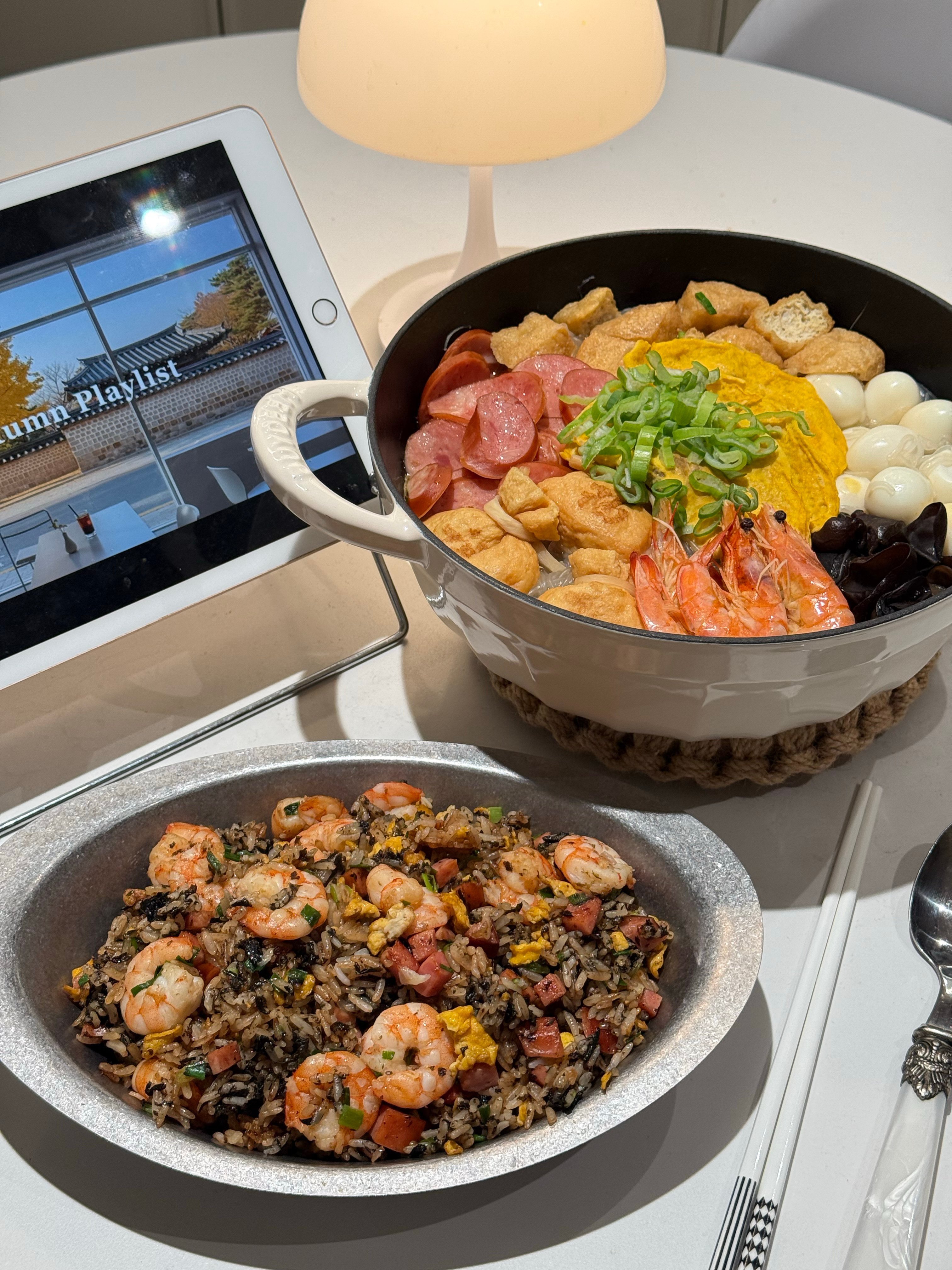 走在路上都是浓郁的桂花香,吃了暖呼呼的蛋饺三鲜锅和紫菜炒饭,真的太绝啦~双十一听劝式购物plog