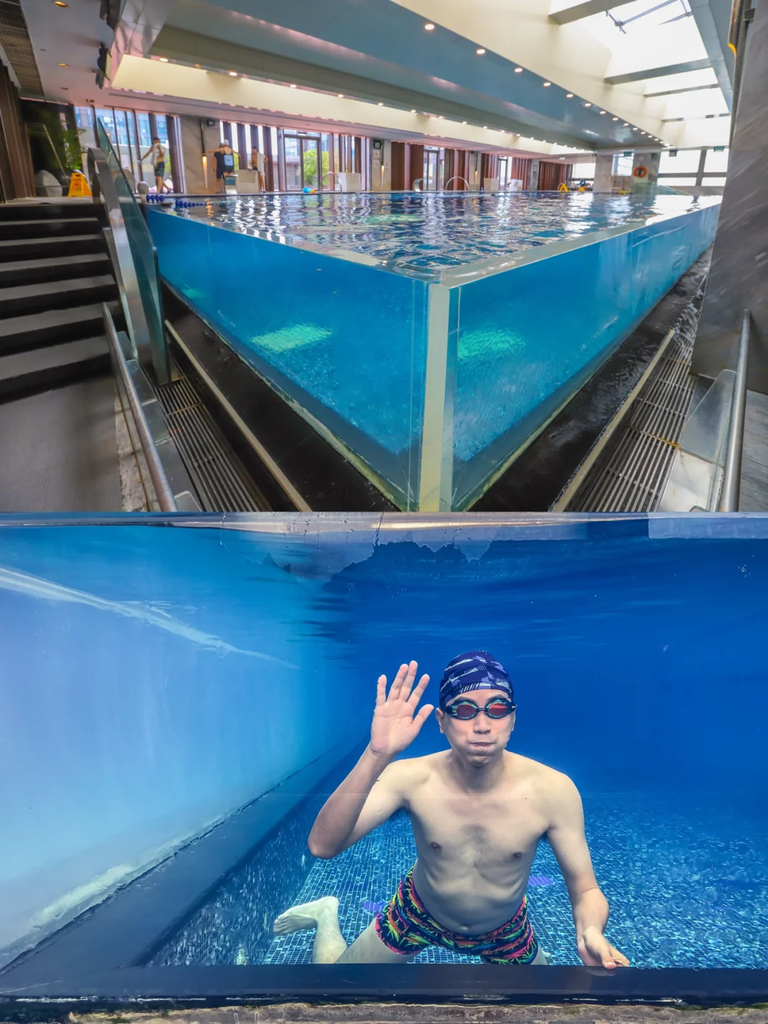 威斯汀很适合年轻人,6层的网红泳池外观就像一个透明的“大鱼缸”,在里面拍一些自己游泳的视频,是非常酷了。