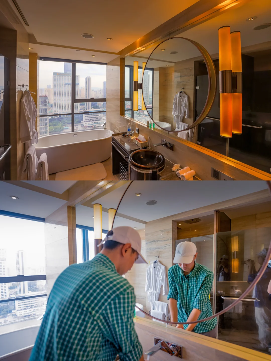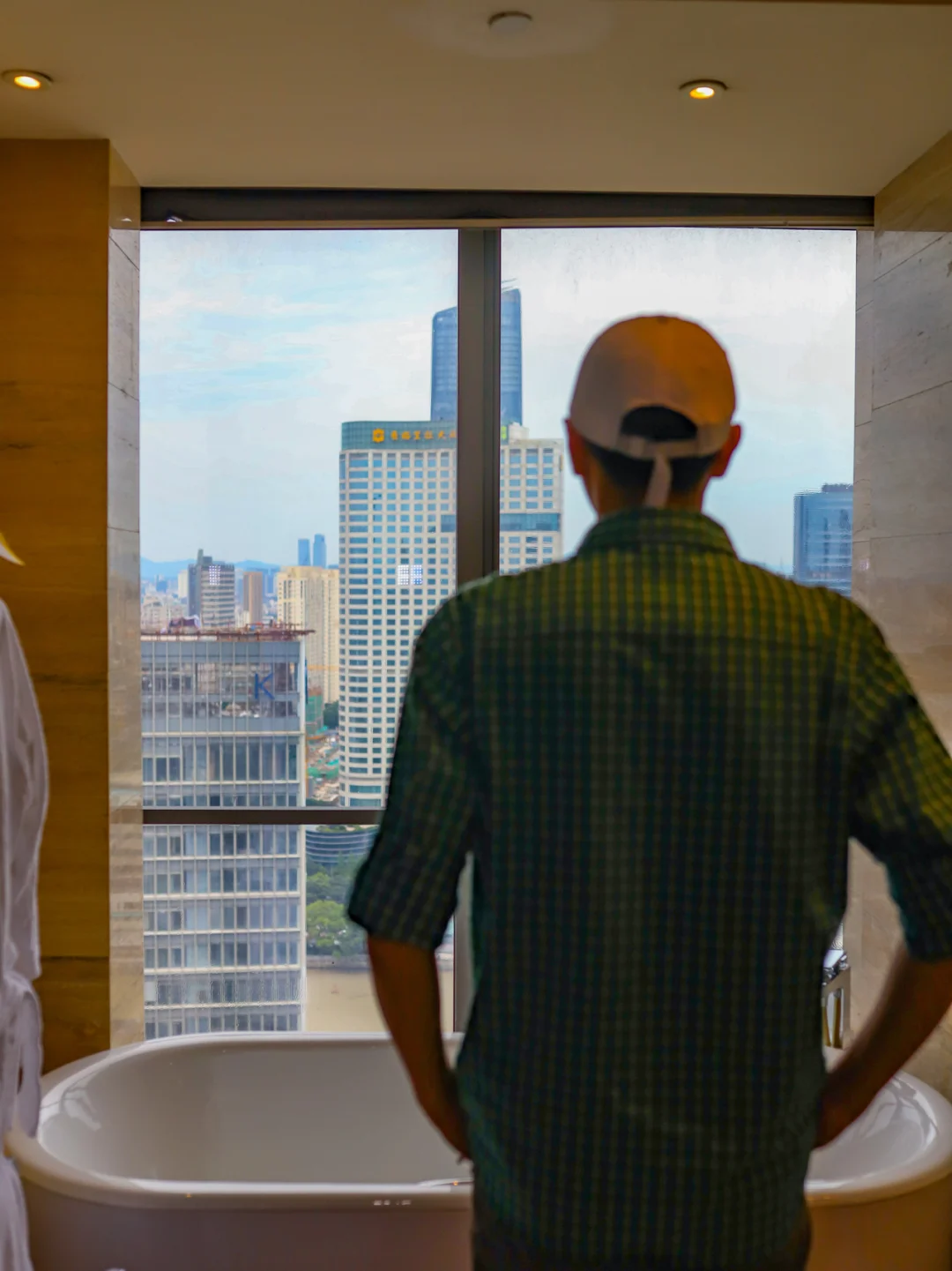 浴缸透过窗户正对着奉化江,边泡澡边看风景太棒了。
