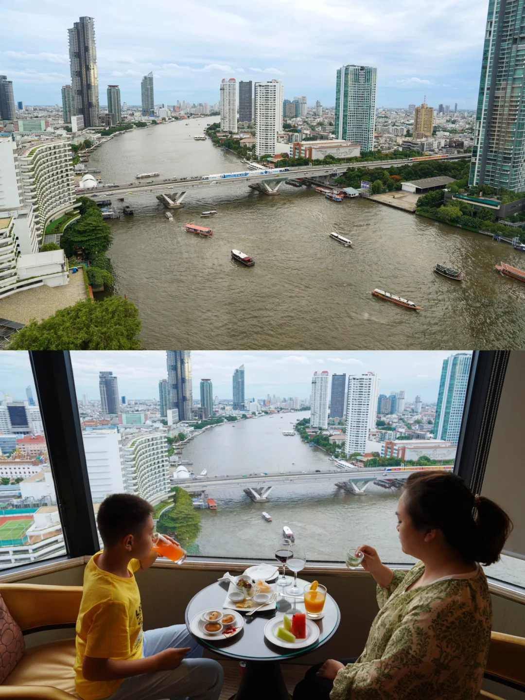 位于24层,视野开阔景色极佳,用餐能俯瞰整条湄南河流和城市的景色。夜景璀璨迷人,特别的夕阳余晖景观也是超美的。