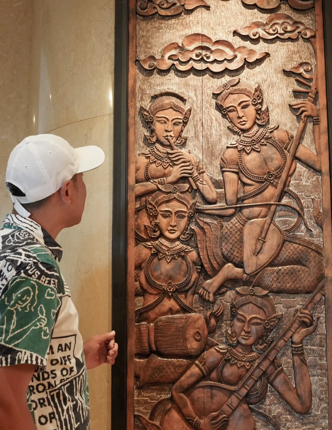 [庆祝R]亲子入住,可以去二层和三层看看,二层大厅有许多兰花和木雕艺术背景画,三层香格里拉翼与曼谷翼连廊中,有许多艺术收藏品,带孩子在这里了解一些泰国的特色文化,也是挺不错的哟。