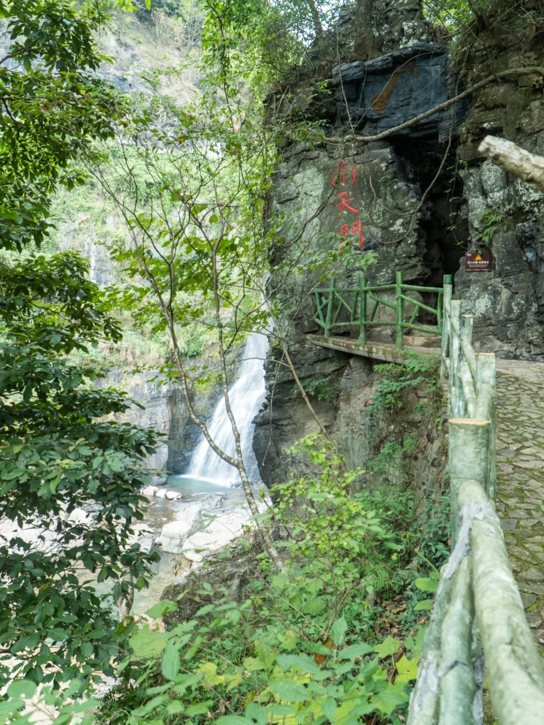 最深处是龙门瀑布,高达数十米的飞泉,一年四季飞珠溅玉,美不胜收。
