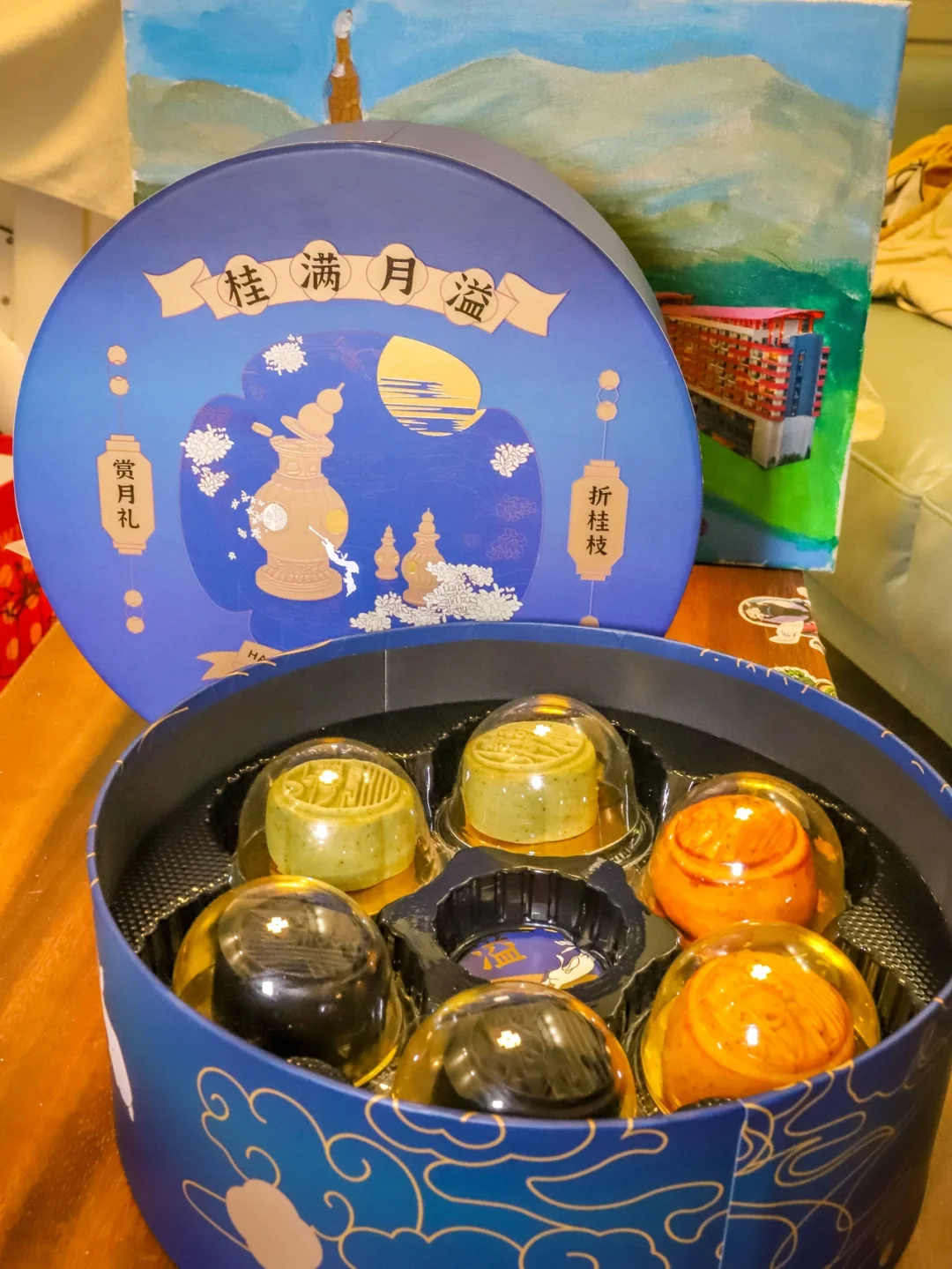 这款月饼美味自然是不用说啦,外包装是淡蓝色的,圆型的礼盒,上面还绘有玉兔、月亮和祥云,那是小时候,我们爷爷给我讲天宫故事的样子。
