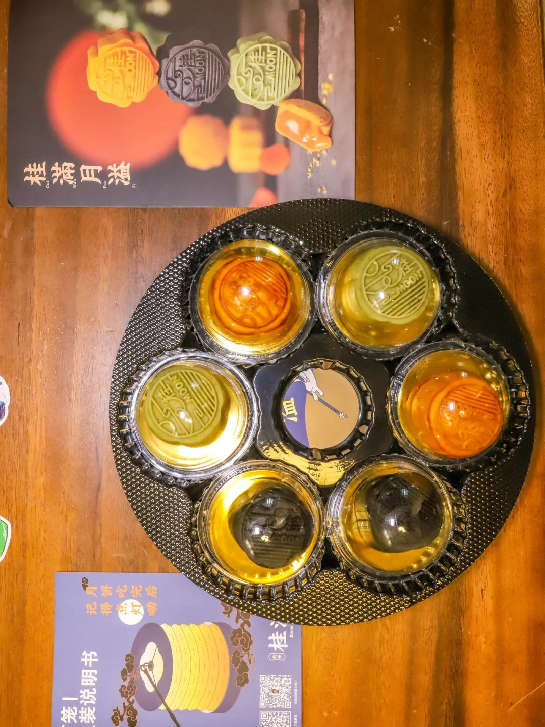 黑色的是普洱茶香味,他的馅料也有蛋黄,味道是普洱茶的味,比较特别,桂花月饼和绿茶月饼我都是第一次吃,真的很不错,推荐。