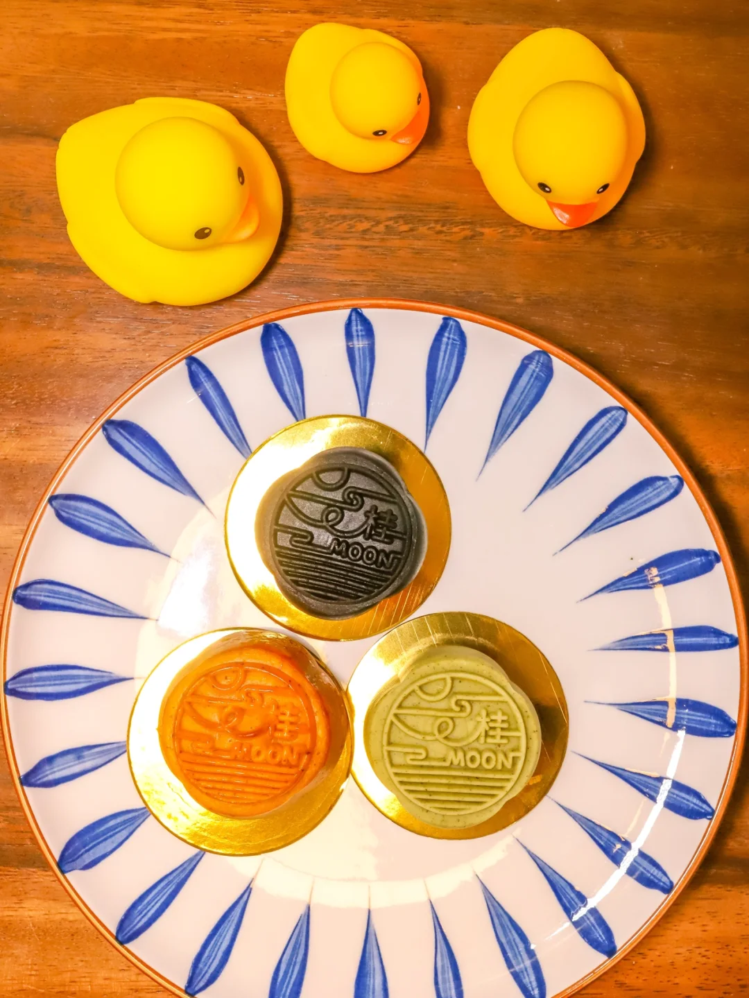 我这款月饼共有三种口味
