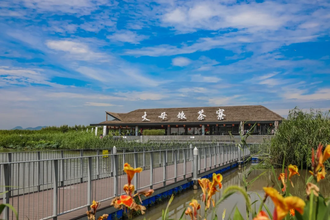 下船的地方有一座丈母娘茶寮,可供游人休息喝茶,也可远眺下渚湖的美景。