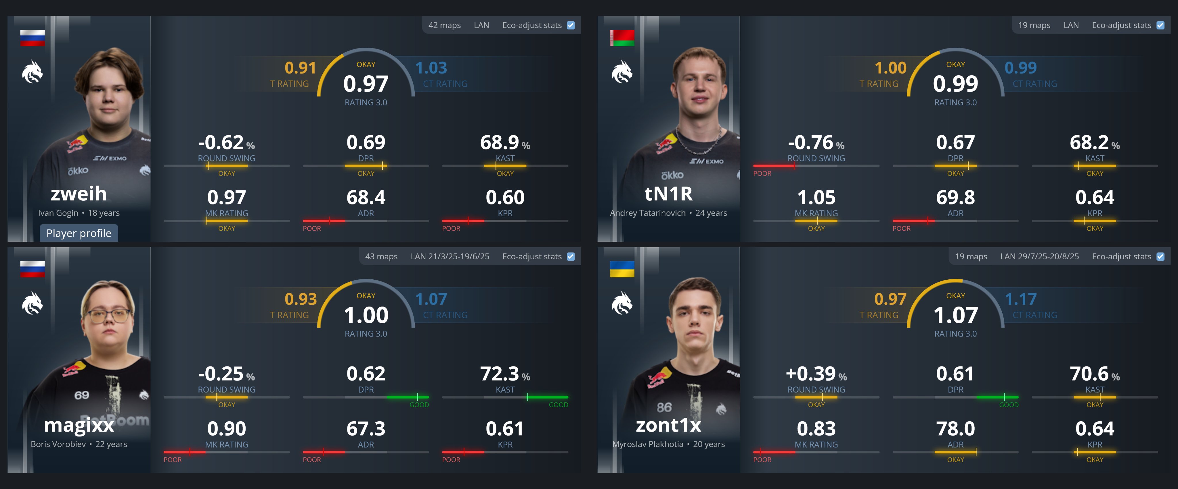 虎扑11月11日讯CS数据统计媒体发布选手数据对比: