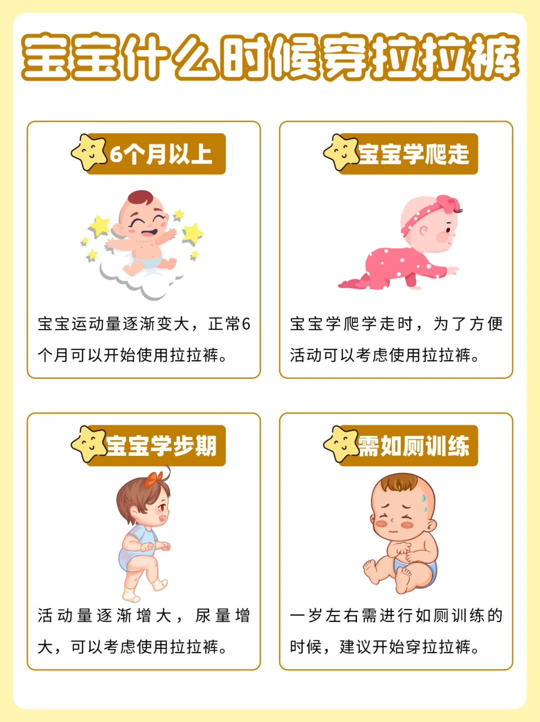 一岁左右需进行如厕训练的时候,建议开始穿拉拉裤。