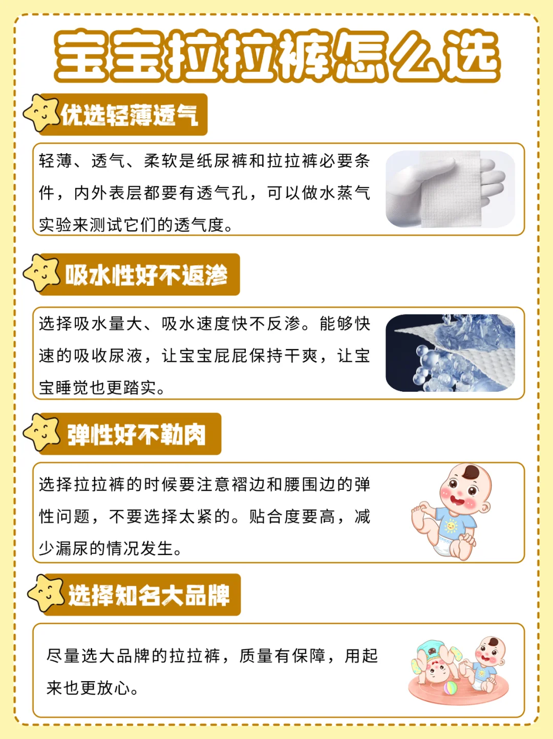 尽量选大品牌的拉拉裤,质量有保障,用起来也更放心。
