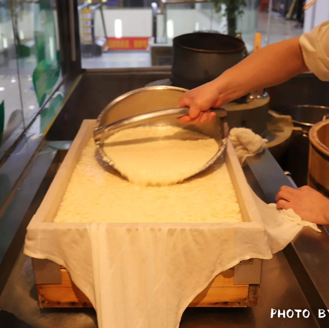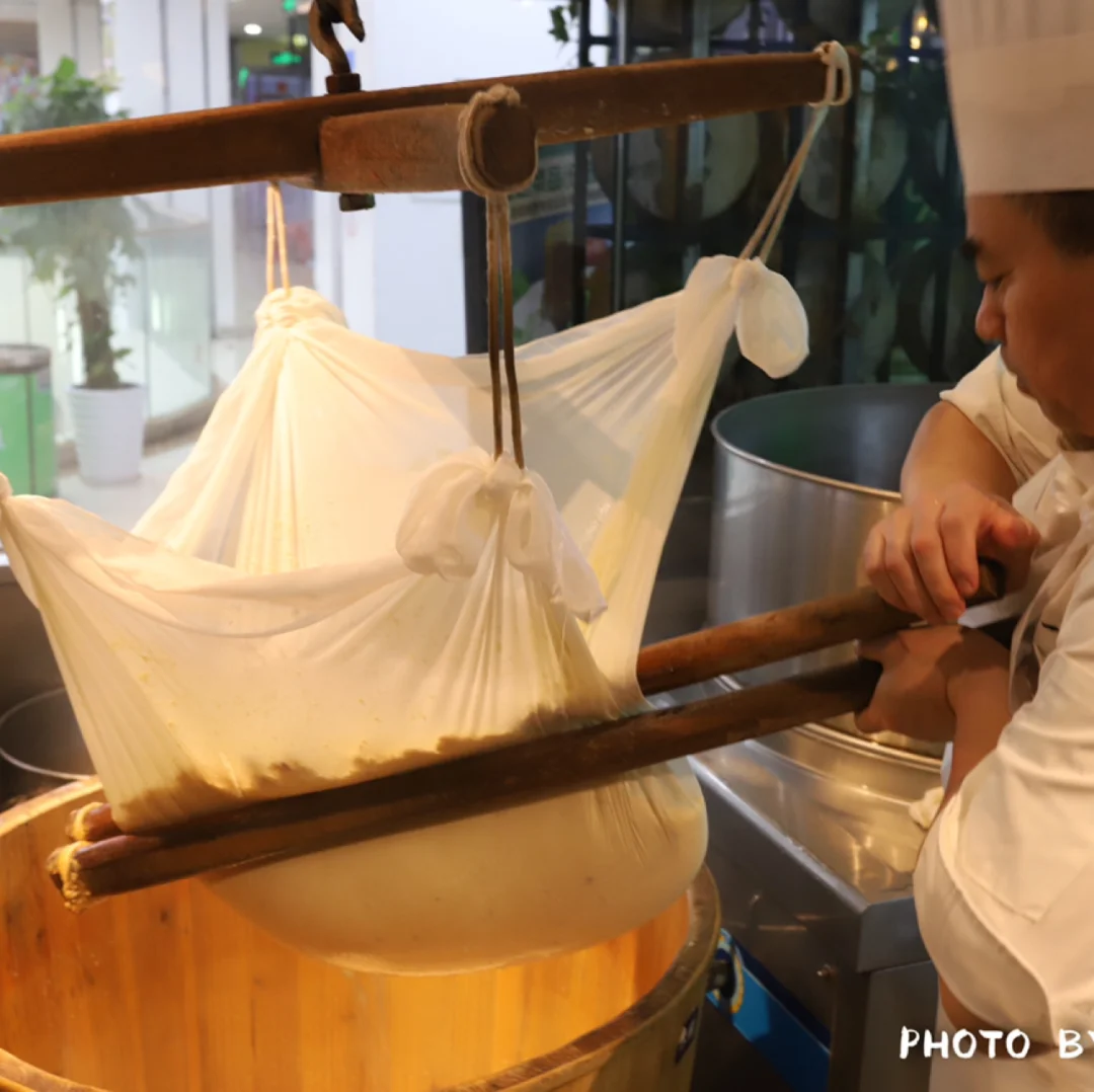 再经过多次的过滤,手工挤压之后,手工磨成的豆浆最细腻,最嫩滑的。灌装豆浆过程中,还能闻到浓浓的大豆鲜香。
