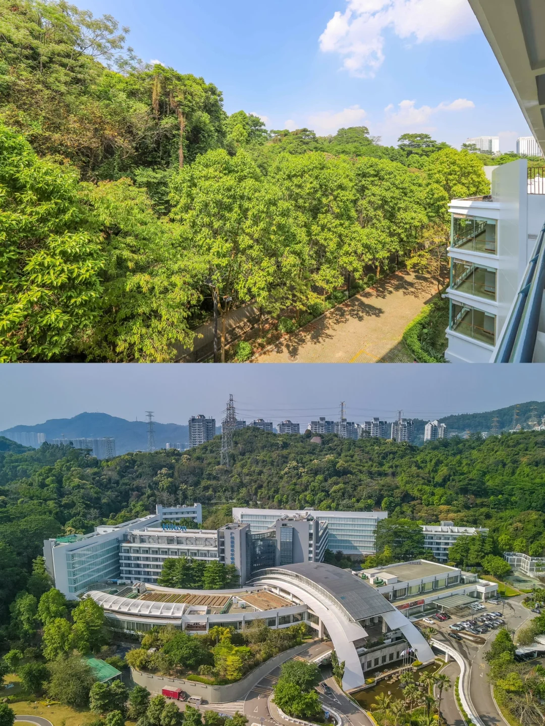 这次我们入住的是尖峰岭公园旁边的广州翡翠希尔顿酒店,酒店的环境非常好,三面被茂密的森林所包围,鲜氧环绕风景旖旎,房间里面推窗即是养眼的绿色,太舒服了。