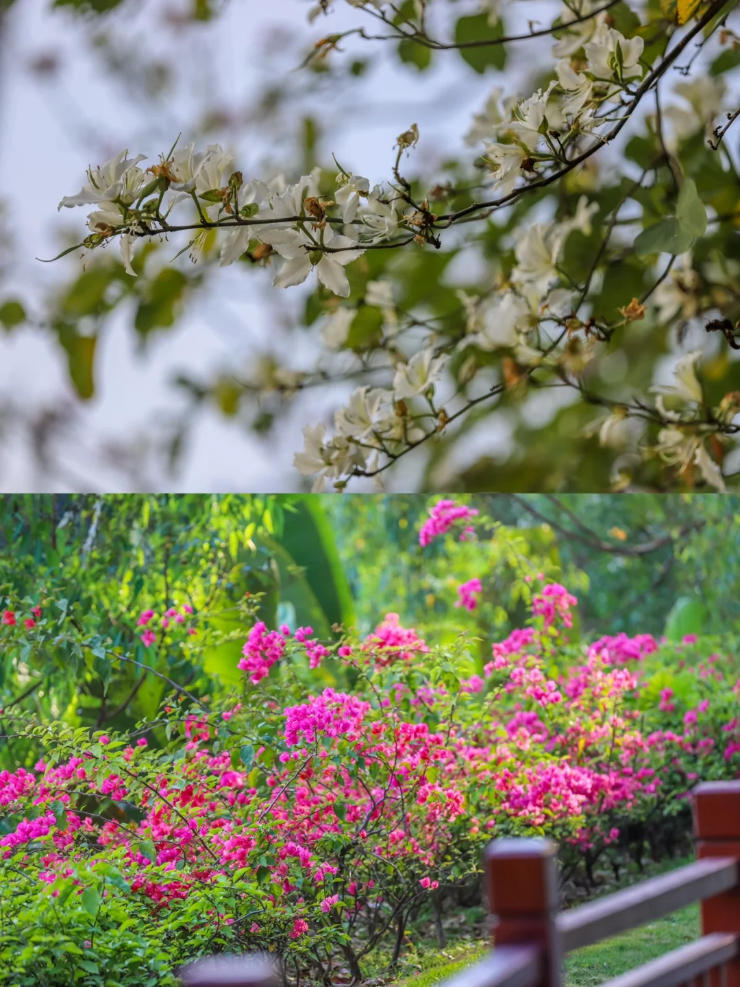 步行道两旁姹紫嫣红的花朵点缀四季常绿的草丛,鸟鸣声中感受春日气息,在自然的怀抱里呼吸鲜氧。