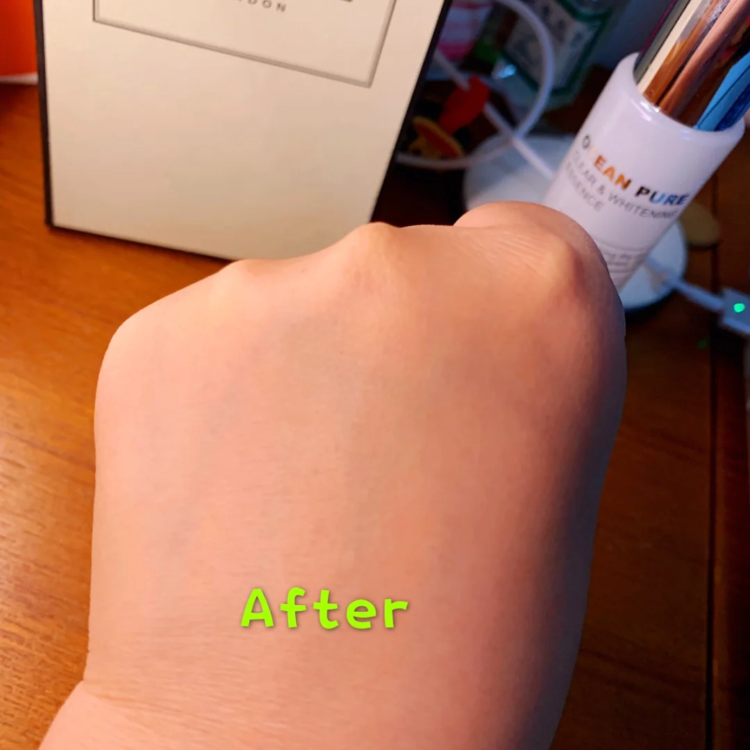 用了一周左右,发现自己肤色不均的地方慢慢地都看不出来了,斑也淡化了很多,脸色也不那么暗沉,苹果肌开始有光泽,闺蜜说我是骗子,见我逢人便说自己晒黑了,以为我真的黑了,其实,哪有…………