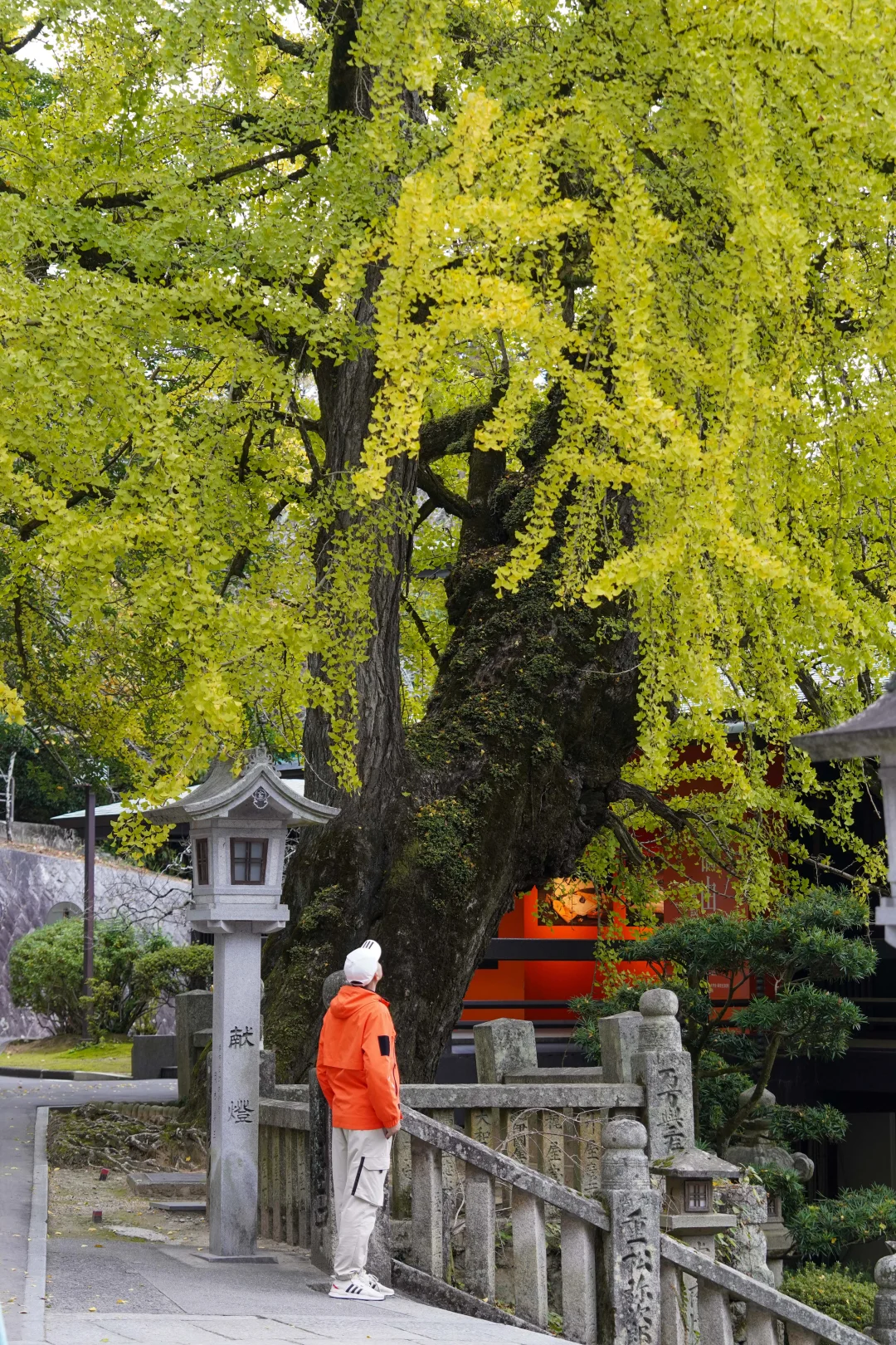 我们这次冬季参拜,沿表参道一路可见枫叶与银杏交相辉映。红色的枫叶、金黄的银杏与古建筑背景相得益彰,是拍照的绝佳场景。