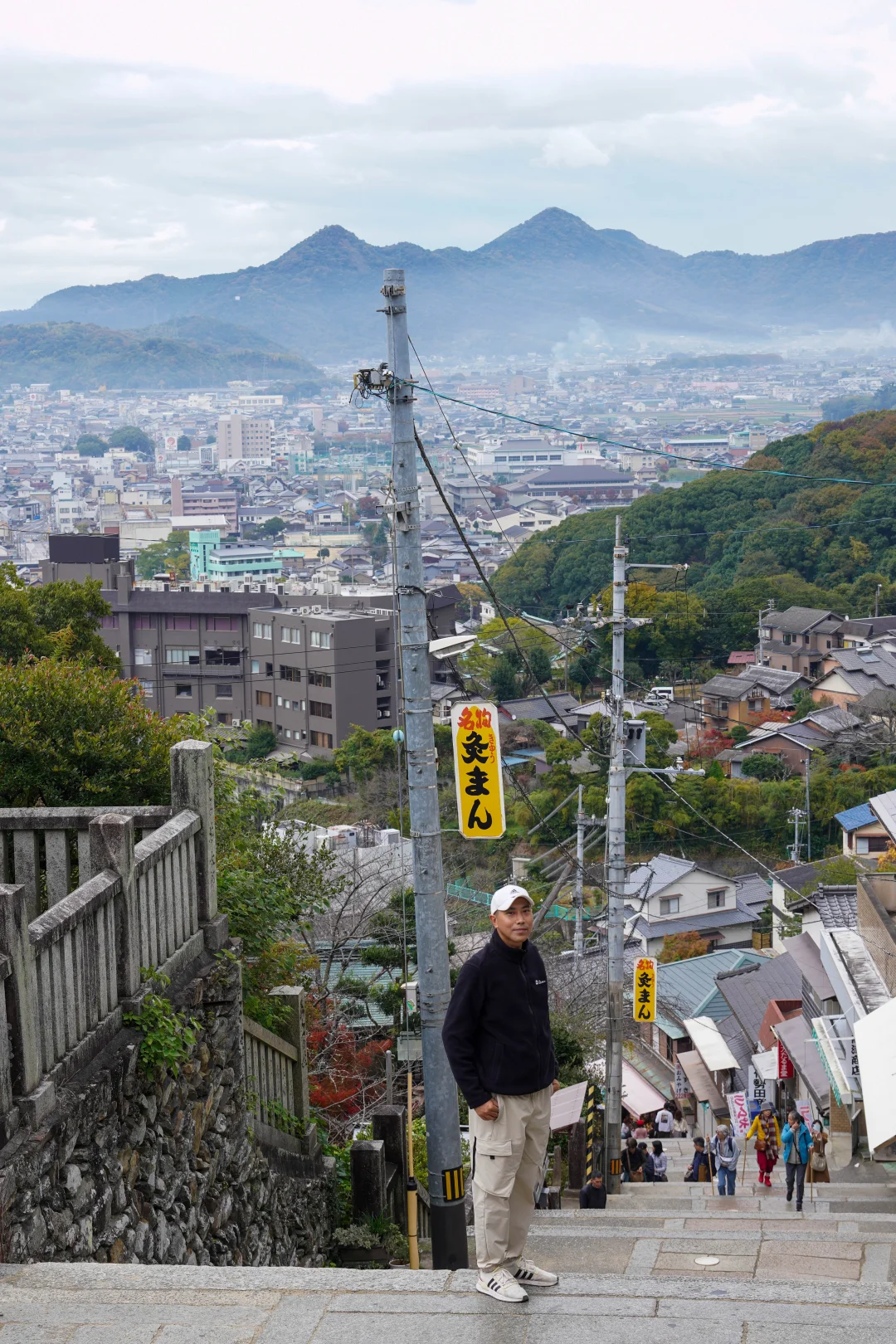 要到达金比罗宫的御本宫,需要攀登785阶台阶,这里是普通游客的参拜终点。站在御本宫的观景台,可以眺望到著名的“赞岐富士”饭野山的壮丽景色。
