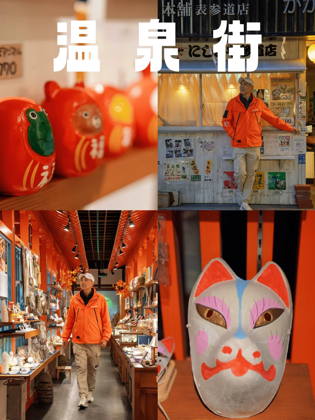 下山后可以在温泉街随意逛逛,这里云集了各式咖啡店、茶庄、乌冬面店和特产小铺。边走边吃小吃,感受浓厚的地方文化氛围。