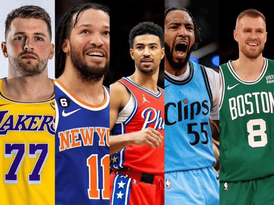 图中的五名球员分别是:东契奇、布伦森、格兰姆斯、小琼斯、波尔津吉斯。