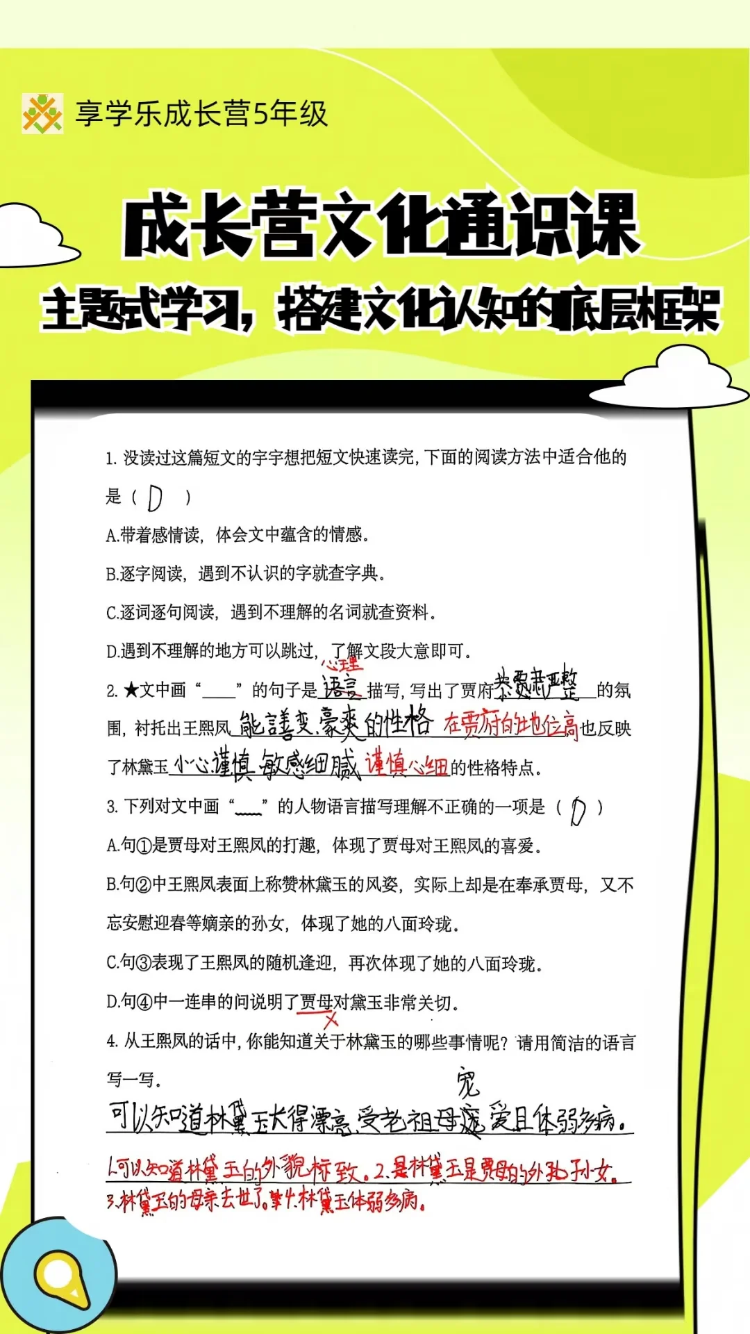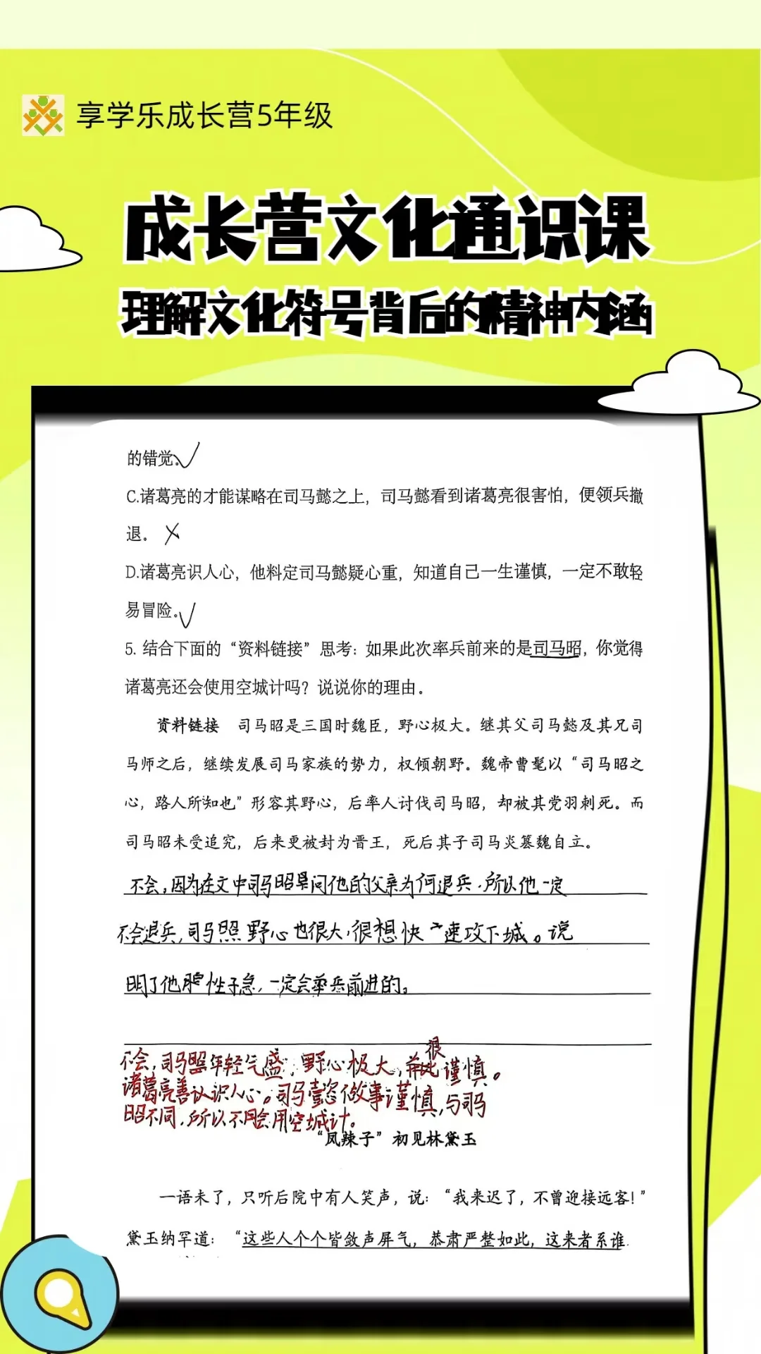 成长营文化通识 ①主题式学习,搭建文化认知的底层框架 ②突破“课本局限”追求“多元融合” 文化母题的体系化认知 ③如“乡土情结”“生死观”“侠义精神”等贯穿古今的文化命题。 ④通过传统节日、民俗活动(如端午赛龙舟、中秋赏月)理解文化符号背后的精神内涵。